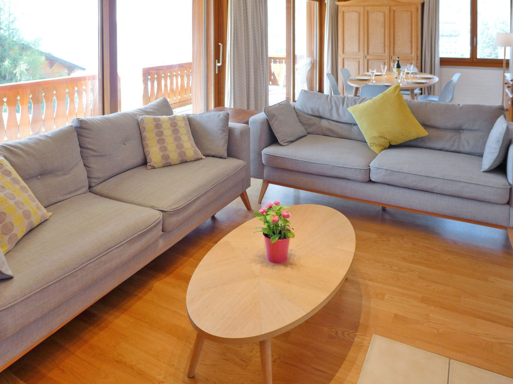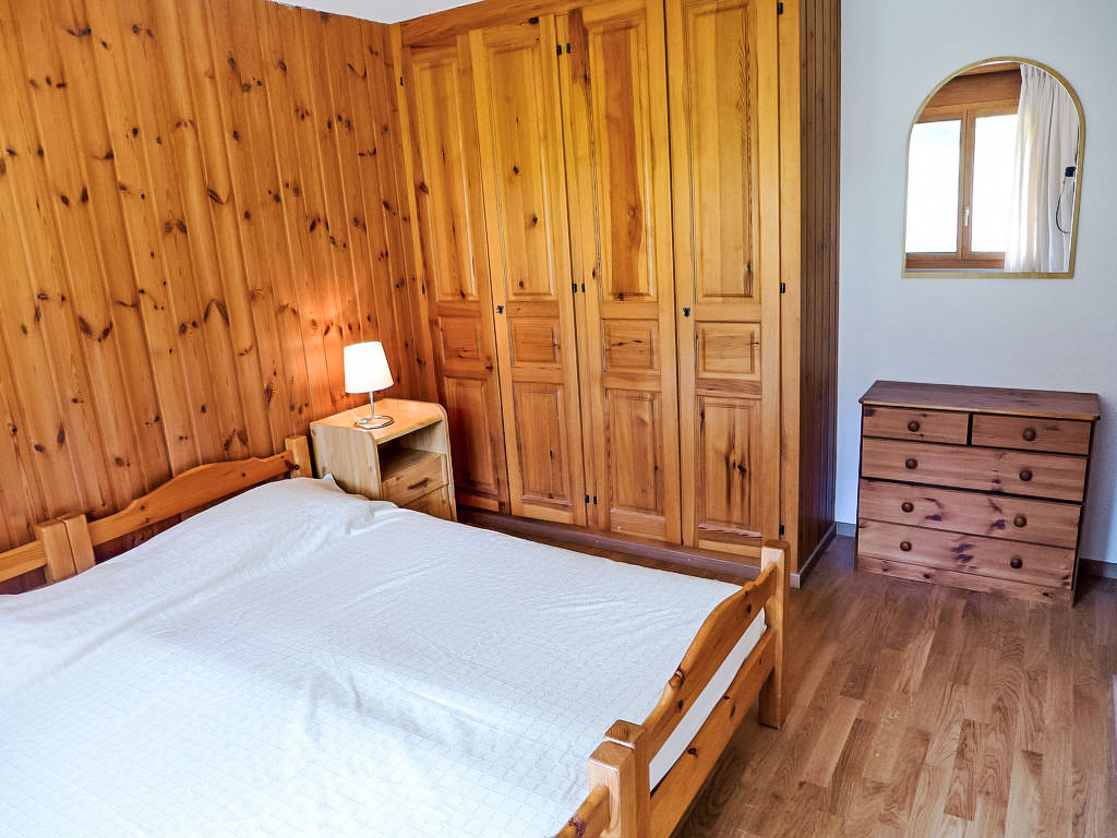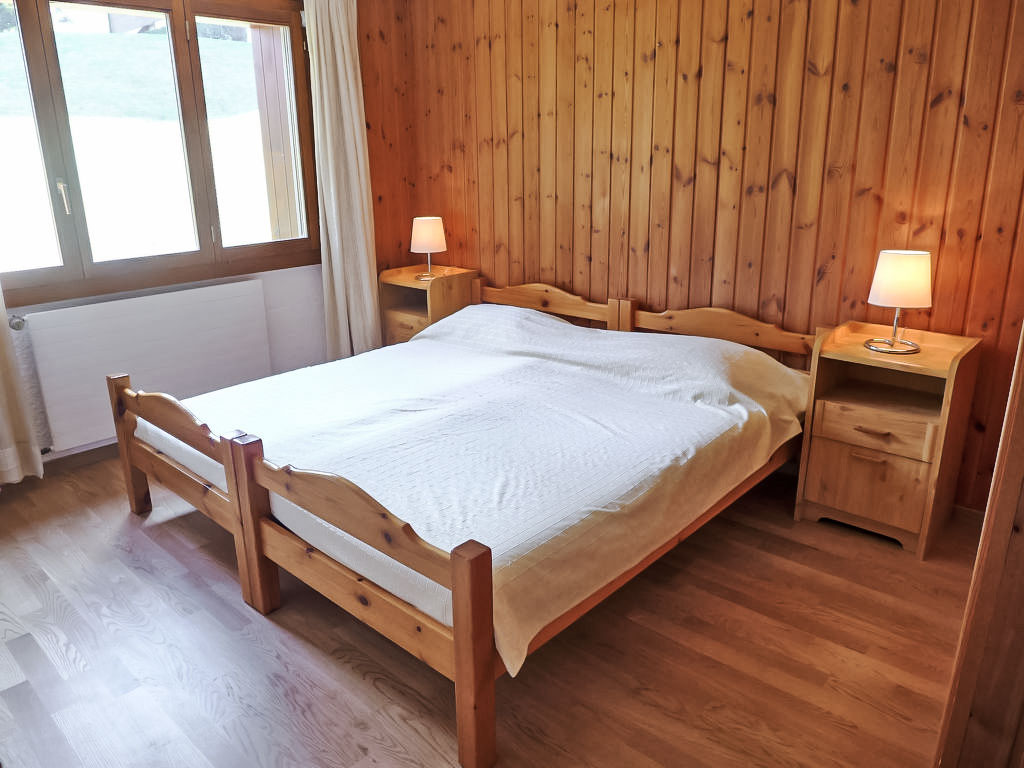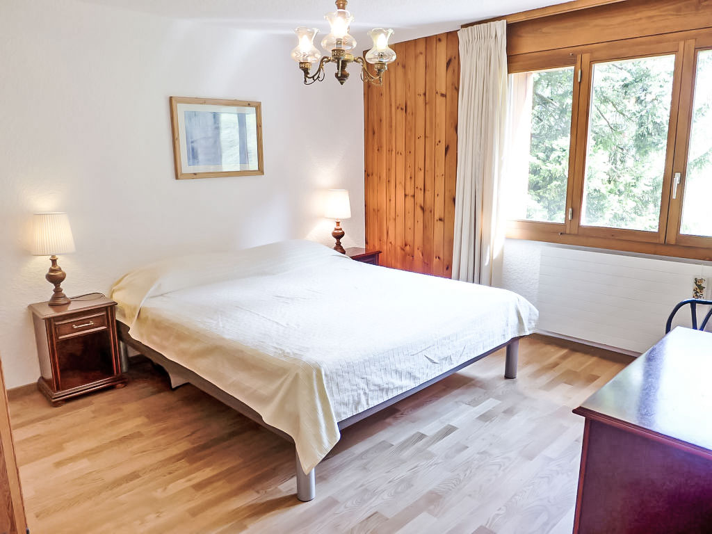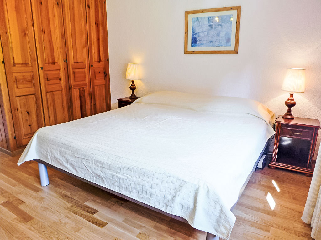 "Hyacinthe 11", 4-Zimmer-Wohnung 100 m2 im 1. Stock, Südlage. Zweckmässig und komfortabel eingerichtet: Wohn-/Esszimmer 30 m2 mit Panoramafenster mit offenem Kamin und Kabel-TV. Ausgang zum Balkon. 1 Doppelzimmer mit 2 Betten. 1 Zimmer mit 1 franz. Bett. 1 Zimmer mit 2 Betten (90 cm). Küche (Backofen, Geschirrspüler, 4 Glaskeramikherd Platten, Toaster, Wasserkocher, Mikrowelle, Tiefkühler, elektrische Kaffeemaschine, Kapseln für die Kaffeemaschine (Dolce Gusto) extra, Fondue Set (Käse)) mit Durchreiche. Ausgang zum Balkon. Bad/Bidet/WC, Dusche/WC, Doppelwaschbecken. Parkettböden. Grosser Balkon 18 m2, Südwestlage. Terrassenmöbel. Sehr schöne Sicht. Zur Verfügung: Haartrockner. Internet (Wireless LAN, gratis). Garage Nr. 4.