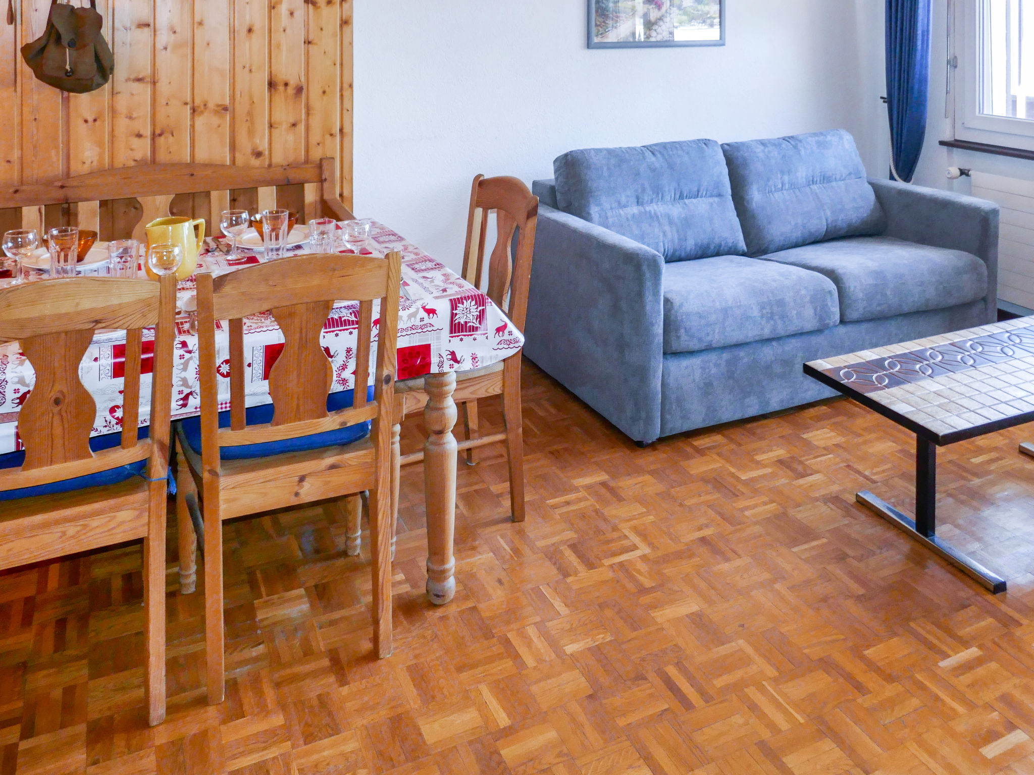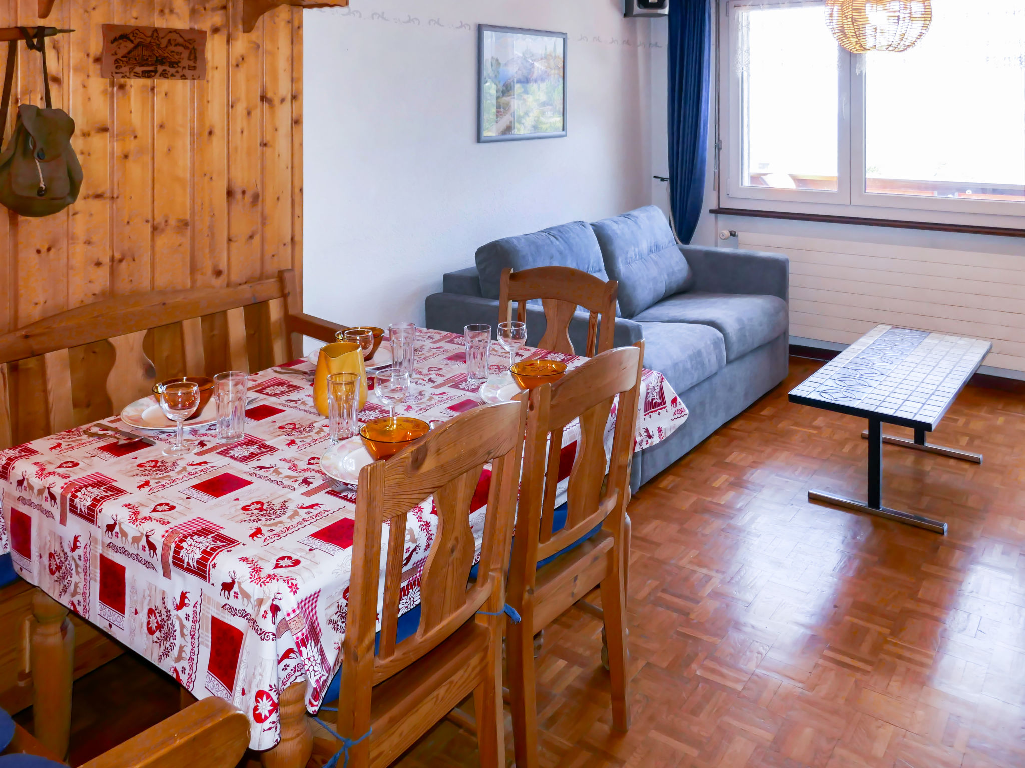 "Valaisia 44b", 2-Zimmer-Wohnung 50 m2 im 4. Stock. Einfach eingerichtet: Wohn-/Esszimmer mit Kabel-TV, Radio und CD. Ausgang zum Balkon. 1 Zimmer mit 1 x 2 Etagenbetten, 1 Doppelbett und Bad/WC. Ausgang zum Balkon. (Geschirrspüler, 4 Glaskeramikherd Platten, Mikrowelle, Racletteofen, Fondue Set (Käse)). Bad/WC. Grosser Balkon, Ostlage. Terrassenmöbel. Schöne Sicht auf die Berge und das Tal. Zur Verfügung: Internet (Wireless LAN, gratis). Garage Nr. 44. Bitte beachten: Nichtraucher-Unterkunft.