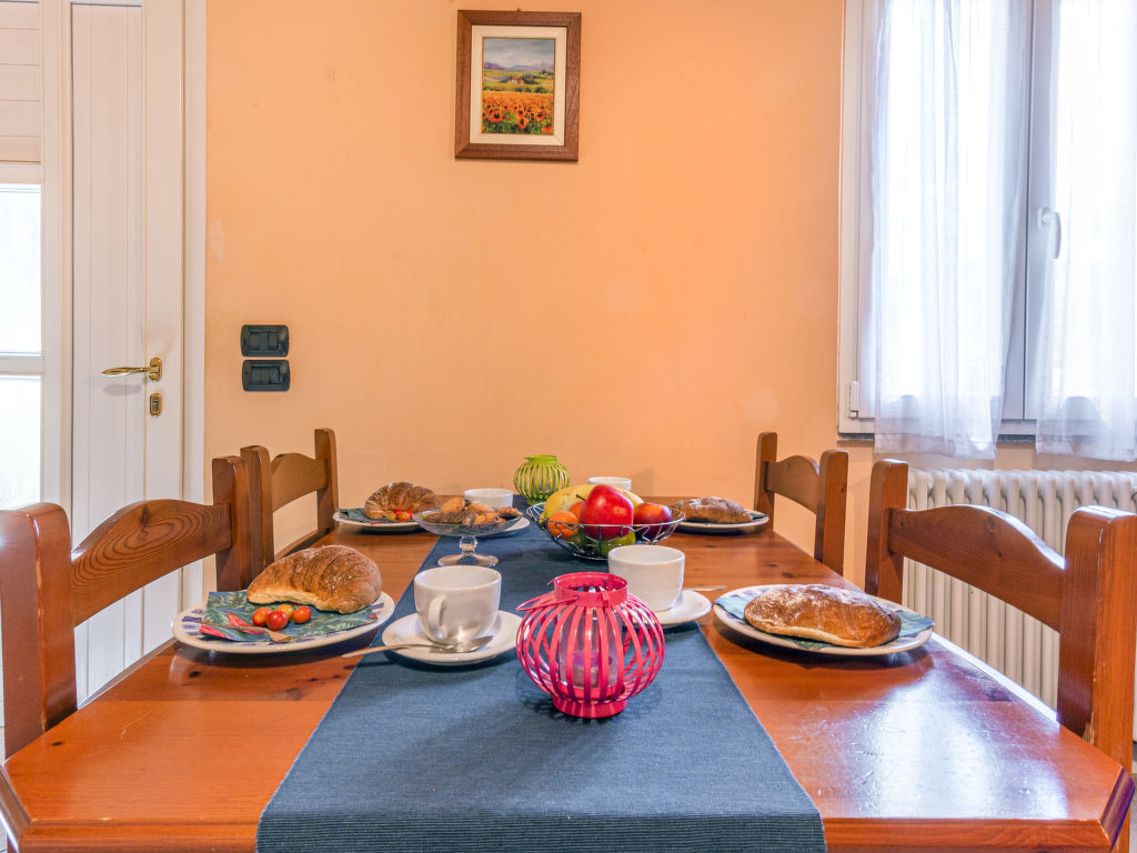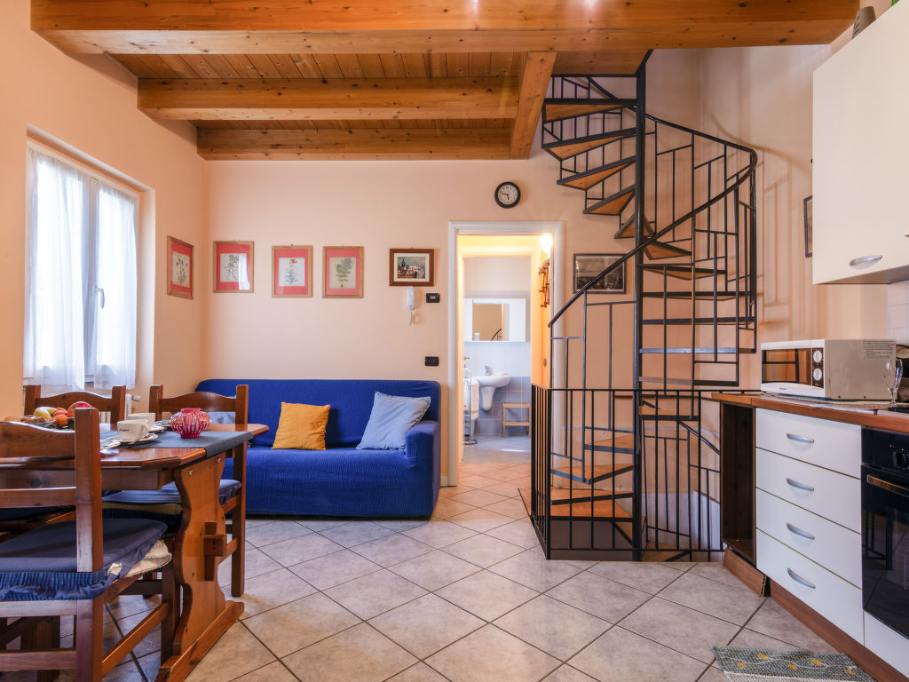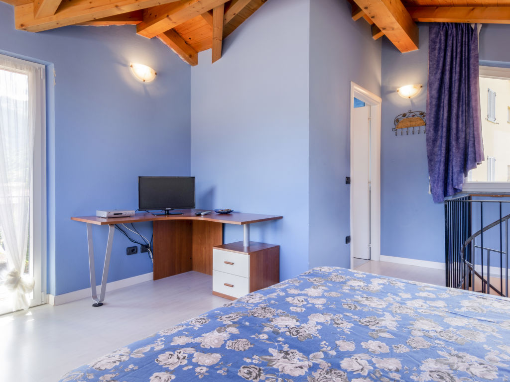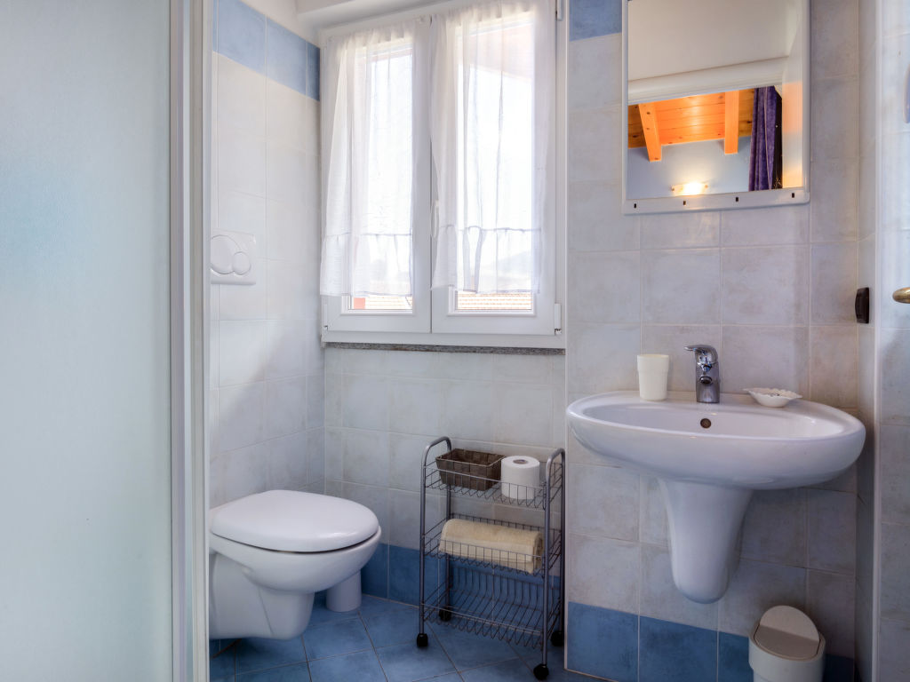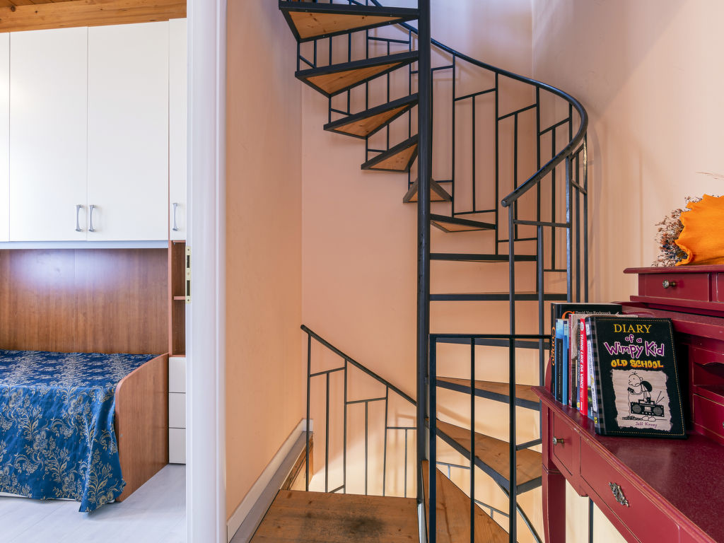 4-Zimmer-Haus, 3 Etagen, ca. 65 m². Erdgeschoss: Wohnraum mit Sitzcouch, Essplatz, Küchenzeile (4 Flammen, Backofen, Geschirrspüler, Kühl-/Gefrierkombination, Kaffeemaschine, Wasserkocher, Toaster) mit Ausgang ins Freie. Dusche/WC. 1. Etage: Schlafzimmer mit franz. Bett (1,60 m breit) und Balkon. Kleines Schlafzimmer mit Einzel- und Ausziehbett. Dachgeschoss (offener Holzdachstuhl, zur Treppe offen): Schlafzimmer mit franz. Bett (1,60 m breit), Balkon und Zugang zu Dusche/WC. Hinweis: Interne Verbindung vom Keller (mit Garagenzugang) bis zum Dachgeschoss über schmale Wendeltreppe (ø ca. 1,30 m). CIR: 013249-CNI-00026