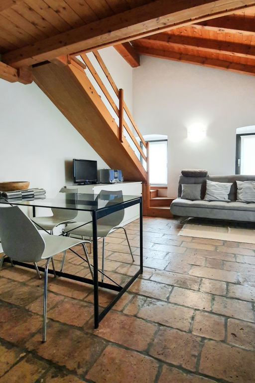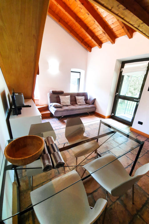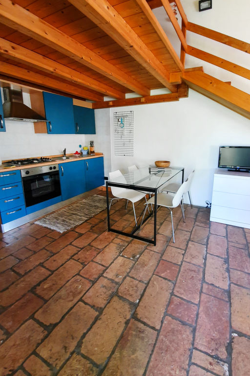 "Grazia (CCO119)", 1-Zimmer-Wohnung 25 m2 auf 2 Stockwerken, im erhöhten Erdgeschoss. Objekt geeignet für 2 Erwachsene. Gemütlich und mit viel Holz eingerichtet: Wohn-/Schlafzimmer mit 1 Diwanbett, Esstisch und Sat-TV. Offene Küche (Backofen, 4 Flammen, Toaster, elektrische Kaffeemaschine). Dusche/WC. G-Heizung. Obergeschoss: (steile Treppe) abgeschrägte, offene Galerie, ohne Fenster mit 1 franz. Bett (160 cm). Natursteinböden. Garten. Terrassenmöbel. Zur Verfügung: Waschmaschine, Kinderhochstuhl, Babybett. Internet (Wireless LAN, gratis). Maximal 1 Haustier/Hund erlaubt. CIR: 097023-CNI-00150