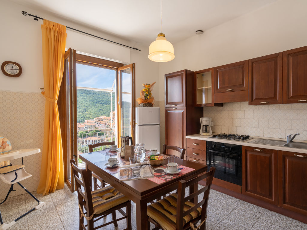 Das Zweifamilienhaus CASA DALIA mit schönem Blick auf den malerischen Ortskern von Pietrabruna steht sonnig am Hang, ca. 100 m von der Ortsmitte entfernt. Parkplatz ca. 10 m unterhalb des Hauses. Zur gut geschnittenen Ferienwohnung gehören zwei möblierte Balkone sowie eine schöne, gepflasterte Terrasse mit Gartenmöbeln, Sonnenschirm, gemauertem Grill und herrlichem Blick auf den Ort und Olivenberge. Das Erdgeschoss wird von der Besitzerfamilie genutzt. Die Besitzerin führt die kleine Bar mit Lebensmittelgeschäft im Ort (ca. 100 m). Die Wohnung ist freundlich und hell eingerichtet. Fliesenböden. Sat-TV (deutsche Programme). Internetzugang (WLAN, inklusive). Waschmaschine, Bügeleisen/-brett. Fliegengitter. Gas-Zentralheizung.