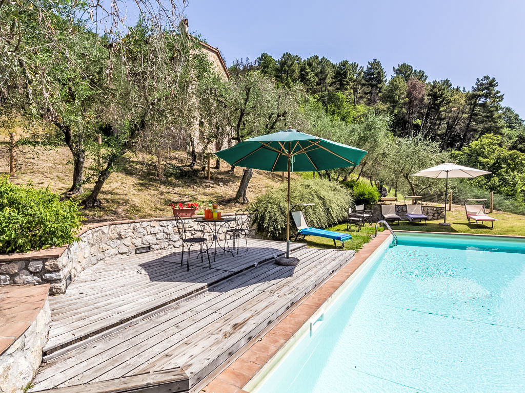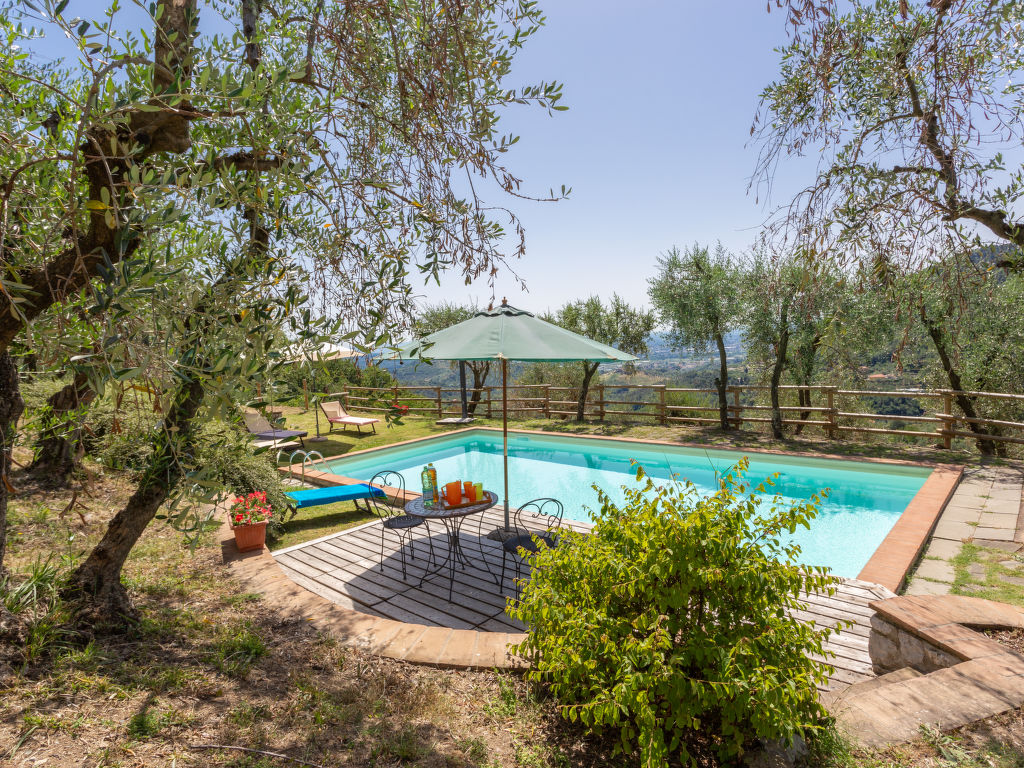 Bauerngut "Dante", 250 m.ü.M.. 4 Häuser im Ferienresort. 11 km vom Zentrum von Lucca, 45 km vom Zentrum von Pisa, 80 km vom Zentrum von Firenze, ruhige, sonnige, erhöhte Lage auf einem Hügel, 36 km vom Meer. Zur Mitbenutzung: Garten 2 ha, Schwimmbad (5 x 10 m, 140 cm tief, saisonale Verfügbarkeit: 01.Mai.-30.Sep.). Im Hause: Wireless LAN, Wäscherei (zur Mitbenutzung), Heizung nur verfügbar von 01.11. bis 15.04.. Parkplatz. Einkaufsgeschäft 7 km, Supermarkt 7 km, Bahnstation "Ponte a Moriano" 7 km, Sandstrand "Viareggio" 36 km.