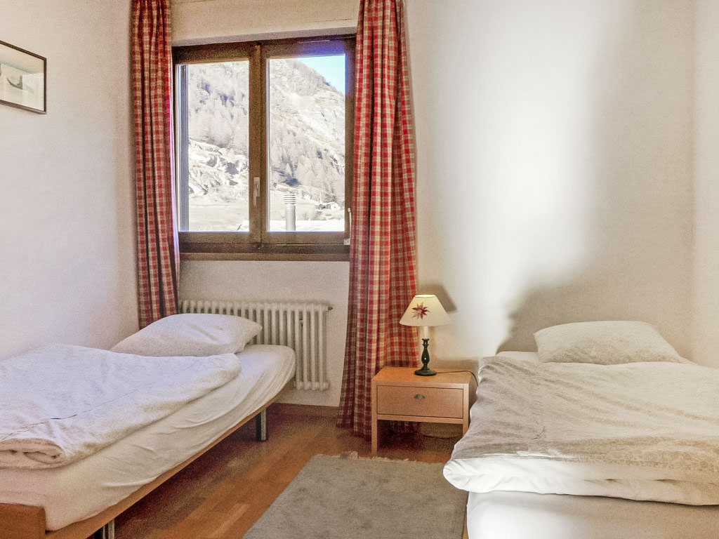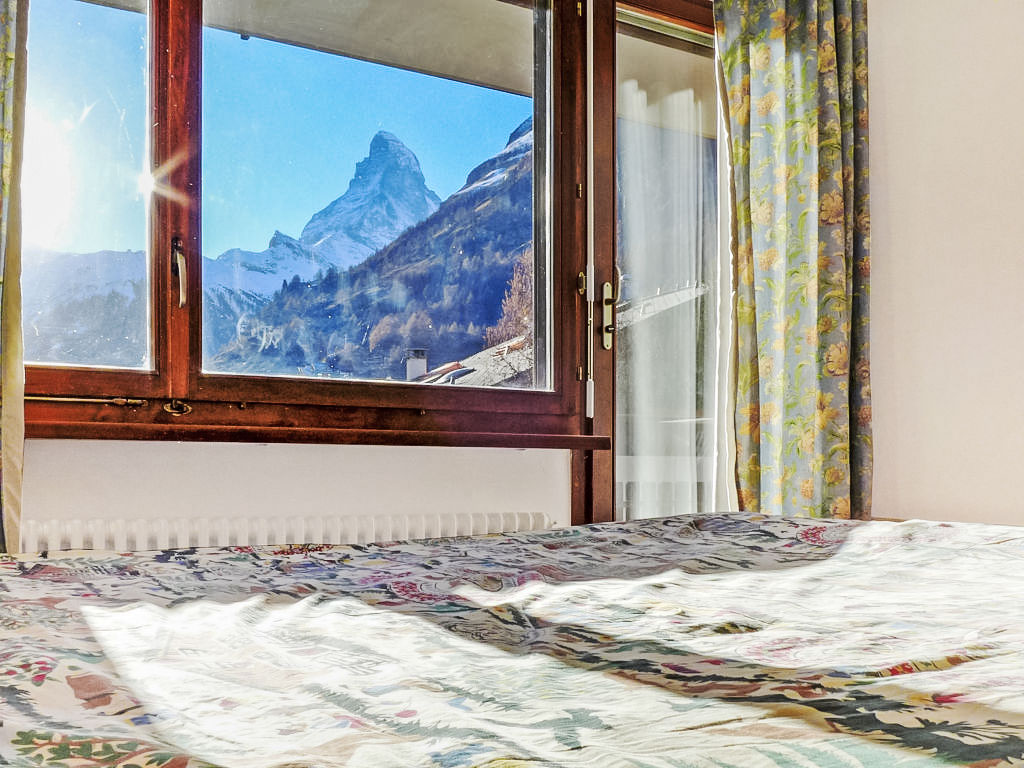 4-Zimmer-Wohnung 115 m2 im 4. Stock. Hell, komfortabel und gemütlich eingerichtet: Wohnzimmer mit offenem Kamin, Esstisch und TV. Ausgang zum Balkon. 2 Doppelzimmer, jedes Zimmer mit 1 Doppelbett (1 x 160 cm, Länge 200 cm). 1 Zimmer mit 2 Betten (90 cm, Länge 200 cm). Küche (Backofen, Geschirrspüler, 4 Glaskeramikherd Platten, Toaster, Wasserkocher, Tiefkühler, elektrische Kaffeemaschine, Racletteofen, Fondue Set (Käse)) mit Durchreiche. Bad/WC, Dusche/WC. Grosser Balkon 30 m2, Südlage. Balkonmöbel, Liegestühle. Schöne Sicht auf das Matterhorn. Zur Verfügung: Haartrockner. Internet (Wireless LAN, gratis). Bitte beachten: Nichtraucher-Unterkunft.