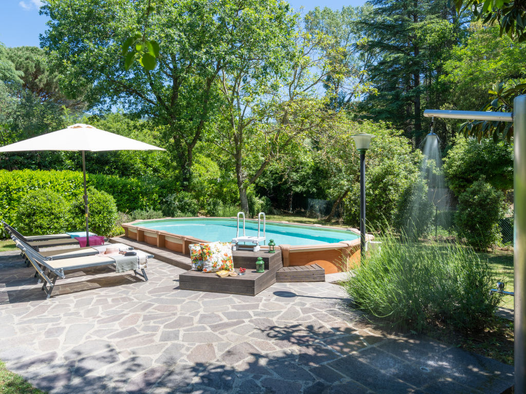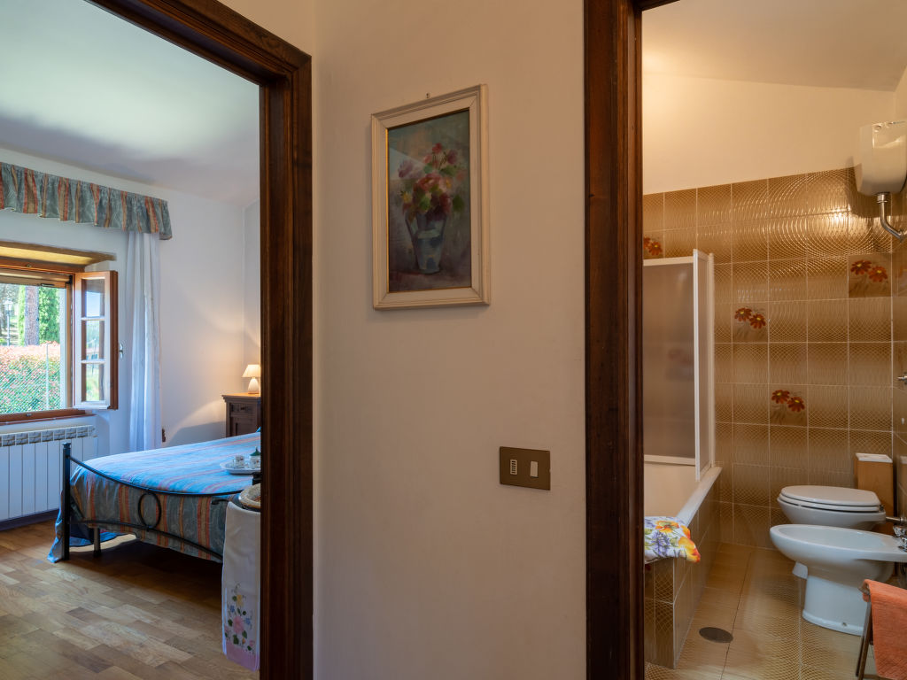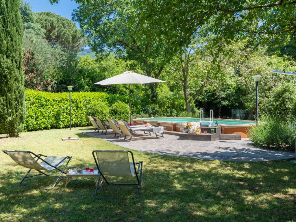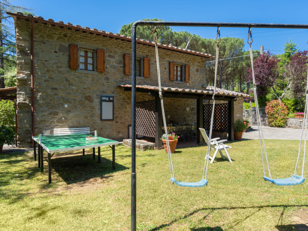 Rustico "Al Ponte", 200 m.ü.M.. Im Ortsteil Tecognano, 2 km vom Zentrum von Cortona, ruhige Lage, im Grünen. Zur Mitbenutzung: (Schaukel). Zur Alleinbenutzung: Grundstück 1'000 m2 (eingezäunt), Terrassengarten Rasen und Bäumen, Aufstellpool (7 x 4 m, 01.05.-30.09.). Aussendusche, Tischtennis, Poolpflege durch den Besitzer/Gärtner. Schmale Zufahrt (300 m Naturweg). Parkplatz (für 2 Autos) auf dem Grundstück. Supermarkt 5 km, Bahnstation "Cortona/Camucia" 5 km. Golfplatz (9 Loch) 20 km.