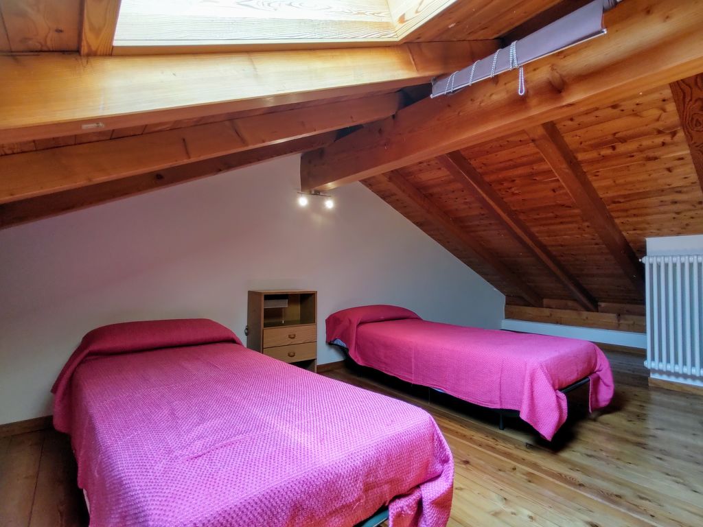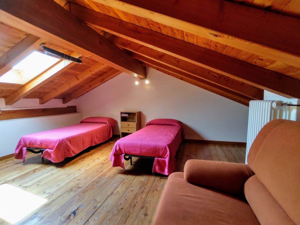 3-Zimmer-Haus, 3 Etagen, ca. 80 m². Über 3 Stufen ins Erdgeschoss: Wohnraum mit Sitzcouch, Schreibtisch und Terrassenausgang, durch halbhohe Mauer abgeteilte Küche (4 Flammen, Backofen, Geschirrspüler, Kühlschrank, Gefrierschrank, Kaffeemaschine) mit Essplatz und Ausgang auf Terrasse. Holztreppe in die 1. Etage: Flur mit Balkonausgang. Doppelzimmer mit begehbarem Kleiderschrank, Balkonausgang. Dusche/WC. Dachgeschoss (nicht durch Tür abgeschlossen, offener Holzdachstuhl, seitlich keine Stehhöhe): Schlafzimmer mit 2 Einzelbetten und Bettcouch. Empfohlene Belegung: 4 Erwachsene oder 2 Erwachsene und 2-3 Kinder. CIR: 013216-CNI-0024