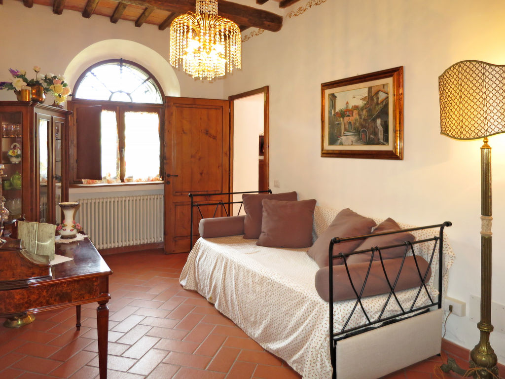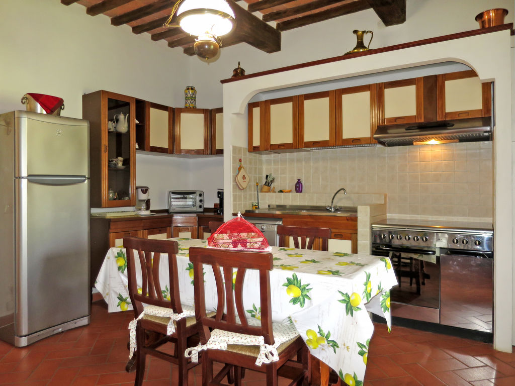 "Alighiero II", 3-Zimmer-Doppelhaushälfte 110 m2 auf 2 Stockwerken. Gemütlich eingerichtet: Wohnzimmer mit Sat-TV und Internationale TV-Sender. 1 offenes Zimmer mit 1 Doppeldiwanbett. Küche (2 Kochplatten, Mini-Backofen, Backofen, Geschirrspüler, 4 Flammen, Toaster, Tiefkühler, elektrische Kaffeemaschine) mit Esstisch. Ausgang zur Terrasse. Sep. WC. Obergeschoss: 1 Zimmer mit 1 franz. Bett (170 cm). 1 Zimmer mit 1 franz. Bett (180 cm). Dusche/WC. G-Heizung. Natursteinböden. Terrasse überdacht, Gartensitzplatz. Terrassenmöbel, Gartengrill (mobil), Liegestühle. Zur Verfügung: Waschmaschine, Kinderhochstuhl, Babybett. Bitte beachten: Nichtraucher-Unterkunft. Maximal 1 Haustier/Hund erlaubt. Eigener Eingang.