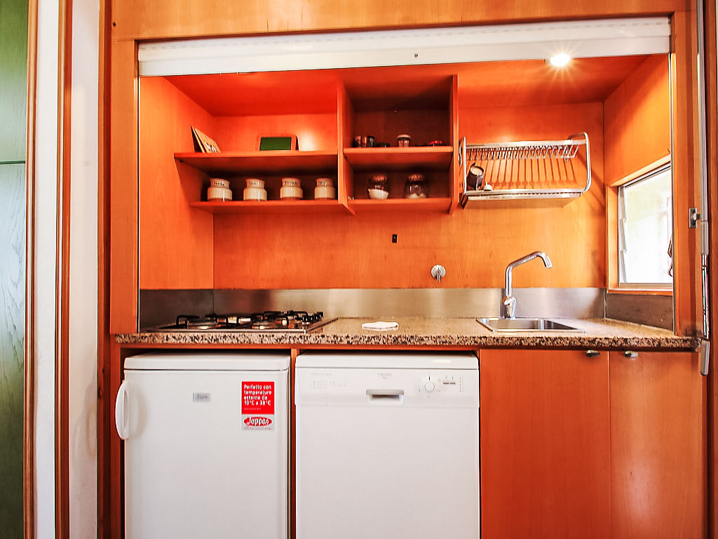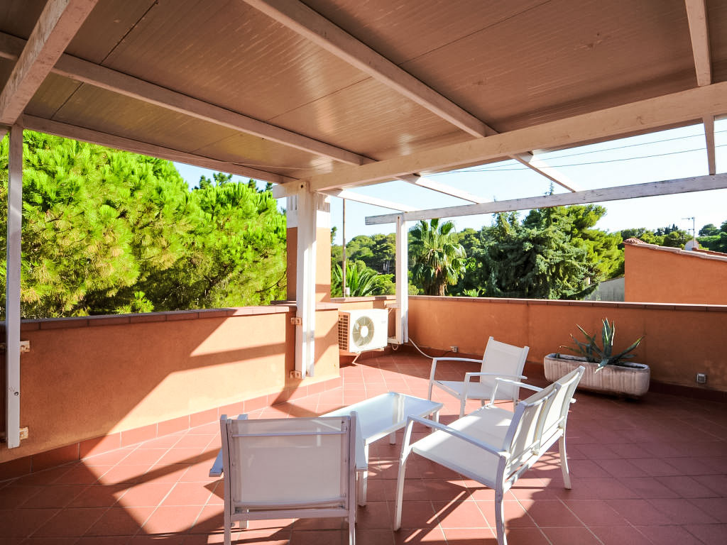 2-Zimmer-Wohnung 45 m2, im Erdgeschoss. Einfach eingerichtet: Wohnzimmer mit 1 Doppeldiwanbett, TV und Klimaanlage. Ausgang zum Balkon, zur Terrasse. 1 Zimmer mit 2 Betten und 1 Ausziehbett. Kochnische (4 Kochplatten, Geschirrspüler) mit Esstisch. Dusche/Bidet/WC. Kleiner Balkon, grosse Terrasse. Terrassenmöbel, Liegestühle, Sitzplatz. Eingeschränkte Sicht auf das Meer. Zur Verfügung: Waschmaschine. Parkplatz (überdacht). Bitte beachten: eigener Eingang.