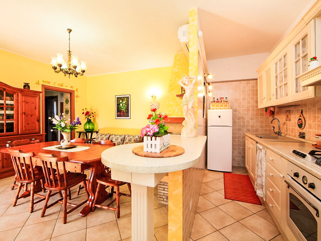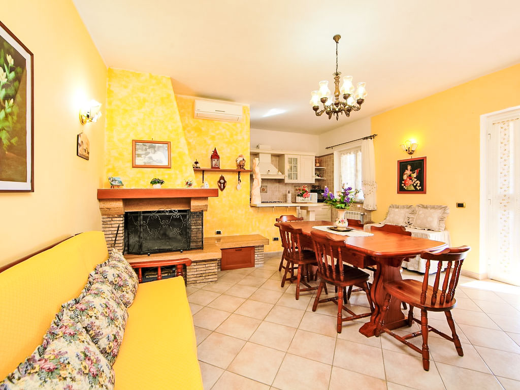 3-Zimmer-Villa 70 m2, im Erdgeschoss. Geräumig und hell, komfortabel eingerichtet: grosses Wohn-/Esszimmer mit offenem Kamin, Digital-TV und Klimaanlage. Ausgang zum Gartensitzplatz. 1 Doppelzimmer mit Digital-TV und Flachbildschirm. 1 Zimmer mit 2 Betten. Kochnische (4 Kochplatten, Backofen, Mikrowelle). Dusche/Bidet/WC. Gartensitzplatz 15 m2, teilweise überdacht. Schöne Sicht auf die Landschaft. Zur Verfügung: Waschmaschine, Bügeleisen, Babybett, Haartrockner, Wickelkommode. Geeignet für Familien.