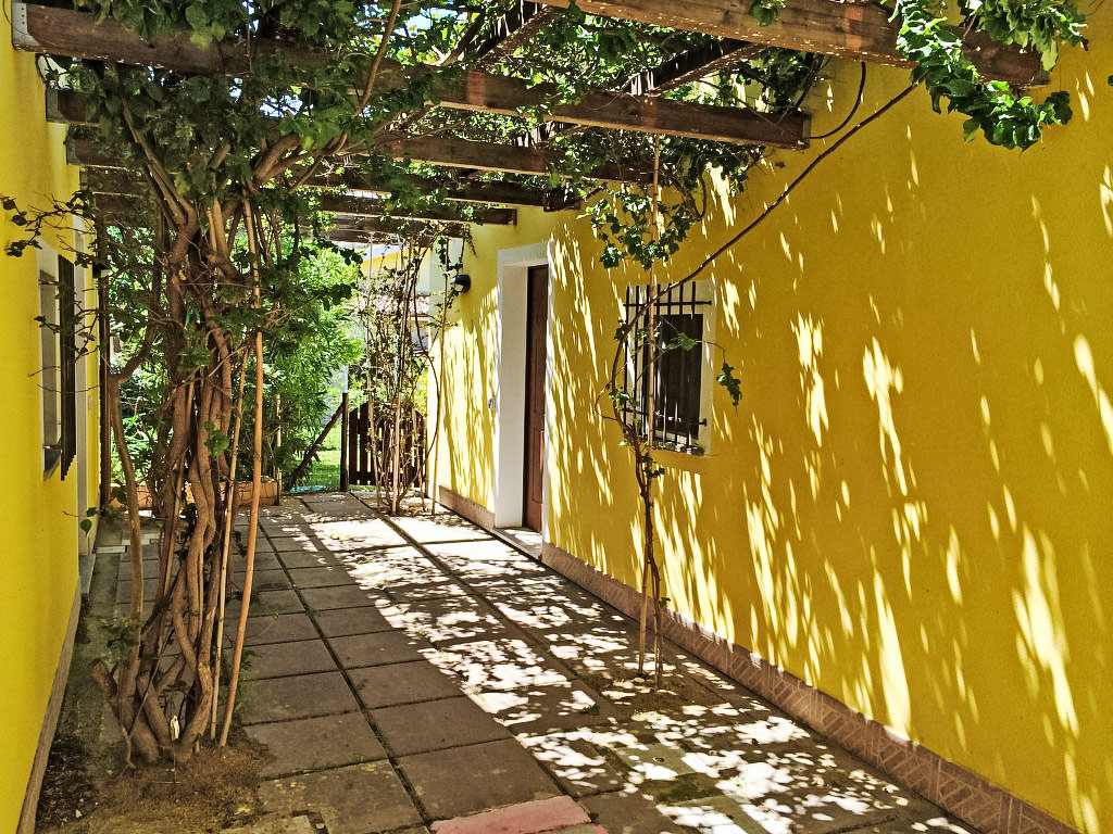 San Pietro a Mare 3 km von Valledoria: Schönes, gemütliches Reihenhaus "San Pietro Green". Ruhige, sonnige Lage, 150 m vom Meer. Zur Alleinbenutzung: Garten 200 m2 (eingezäunt). Aussendusche, Parkplatz beim Haus. Supermarkt 2 km, Restaurant, Bar 100 m, Sandstrand "San Pietro a Mare" 150 m. Nahe gelegene Sehenswürdigkeiten: Isola Rossa 17 km, Costa Paradiso 27 km, Stintino 75 km. Bitte beachten: Fahrzeug empfohlen.