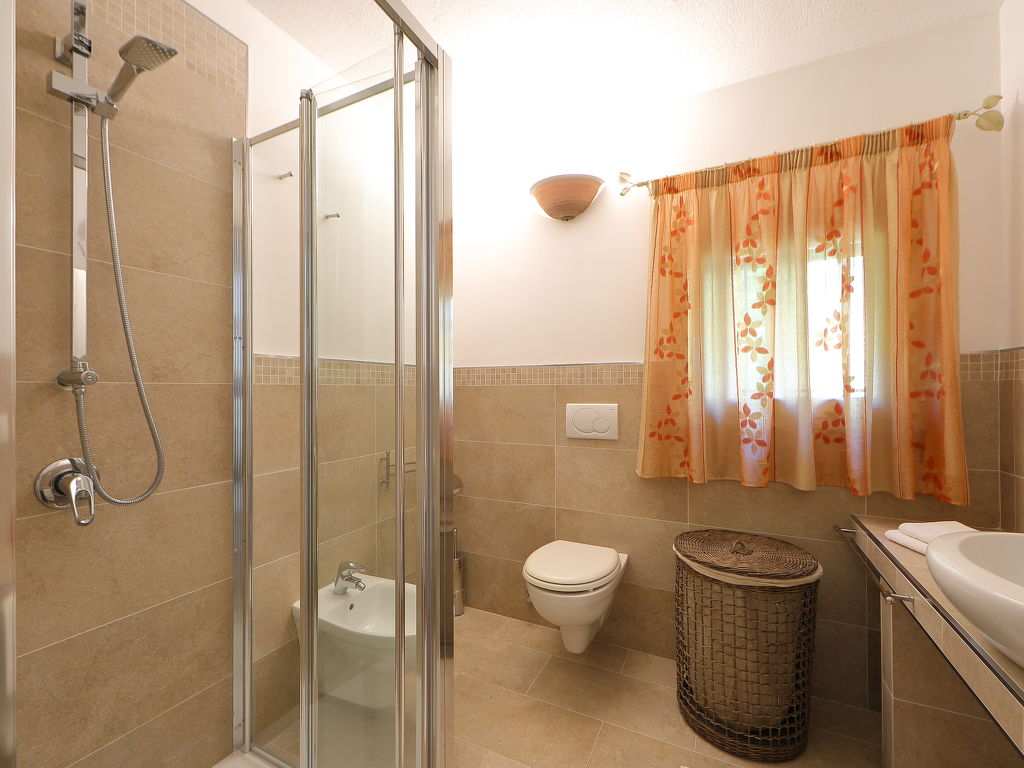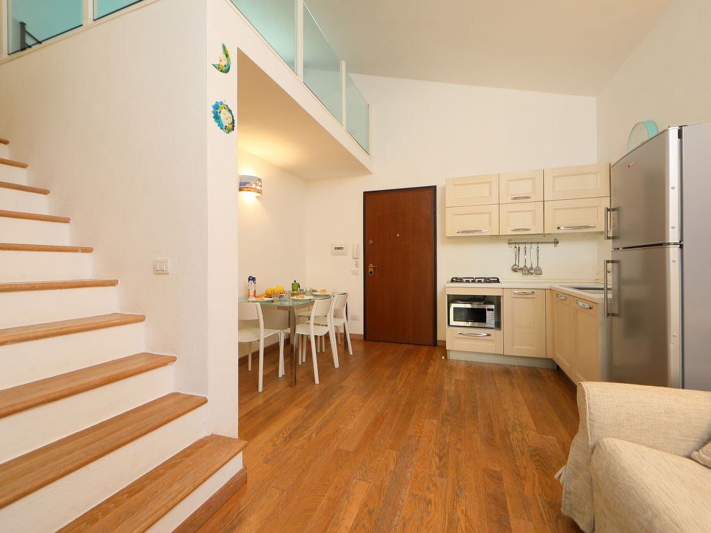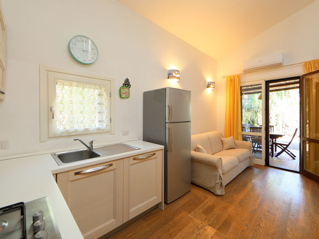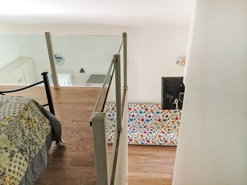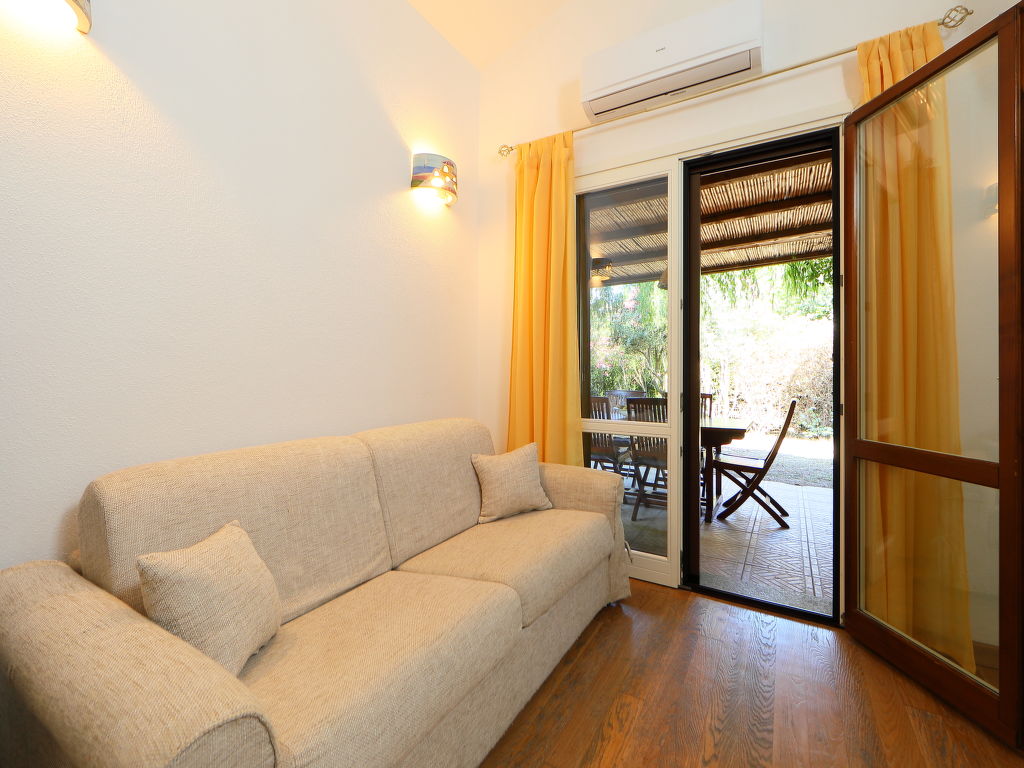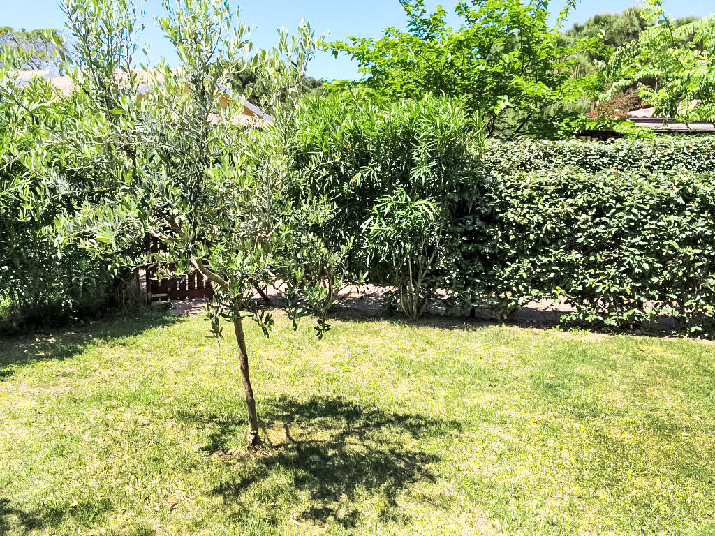 2-Zimmer-Reihenhaus 50 m2 auf 2 Stockwerken. Zweckmässig und komfortabel eingerichtet: Wohn-/Esszimmer mit TV und Klimaanlage. Ausgang zum Gartensitzplatz. 1 Zimmer mit 1 Doppelbett und Klimaanlage. Abgeschrägte Galerie, Deckenhöhe 120 - 220 cm mit 2 Betten. Kochnische (4 Kochplatten, Geschirrspüler, Tiefkühler). Dusche/Bidet/WC. Parkettböden. Terrassenmöbel. Zur Verfügung: Waschmaschine, Fliegengitter.