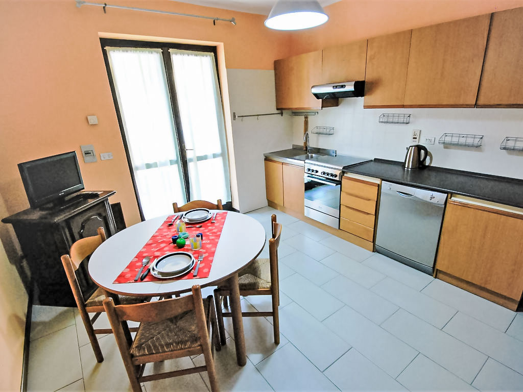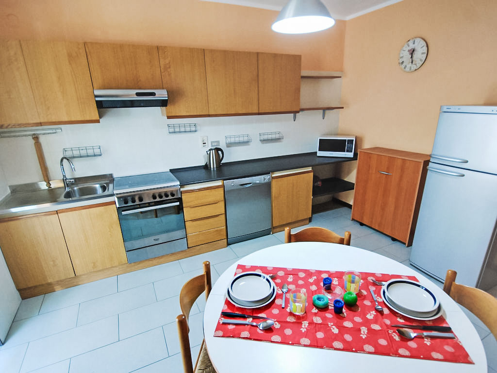 2-Zimmer-Wohnung 40 m2, im Erdgeschoss. Einfach und zweckmässig eingerichtet: Esszimmer mit 1 Wandschrankbett, Esstisch und TV. 1 Doppelzimmer. Grosse Kochnische (Backofen, Geschirrspüler, 4 Flammen, Wasserkocher, Tiefkühler). Dusche/Bidet/WC. Heizung. Zur Verfügung: Haartrockner. Parkplatz. Bitte beachten: Nichtraucher-Unterkunft. 1 Haustier/Hund erlaubt. Eigener Eingang.