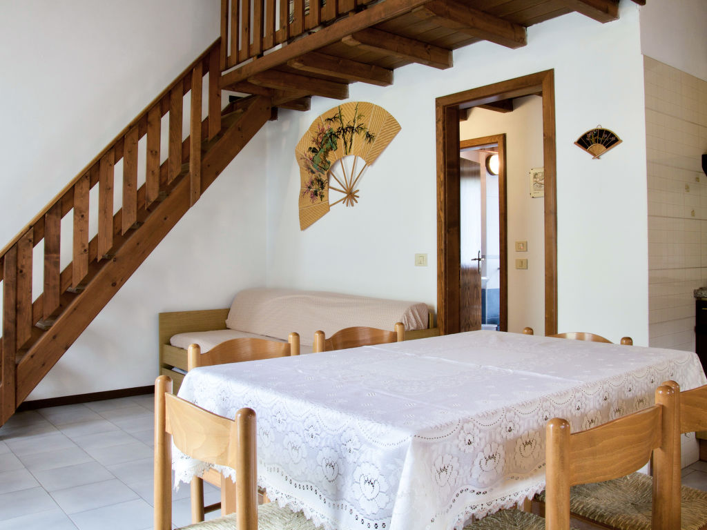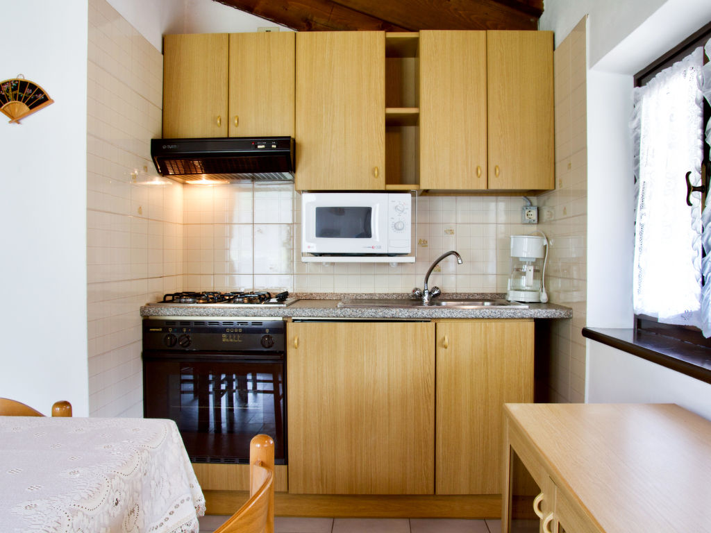 2½-Zimmer-Wohnung, 2 Ebenen, 1. Etage, ca. 50 m². Separater Zugang über Außentreppe in Wohn-/Schlafraum mit Bettcouch, Essplatz, Küchenzeile (4 Flammen, Mikrowelle, Kühlschrank, Kaffeemaschine)und Balkonausgang. Vom Wohnraum über Holztreppe zur offenen Galerie (eingeschränkte Stehhöhe) mit 2 Einzelbetten. Doppelzimmer. Dusche/WC. CIPAT:022229-AT-052030