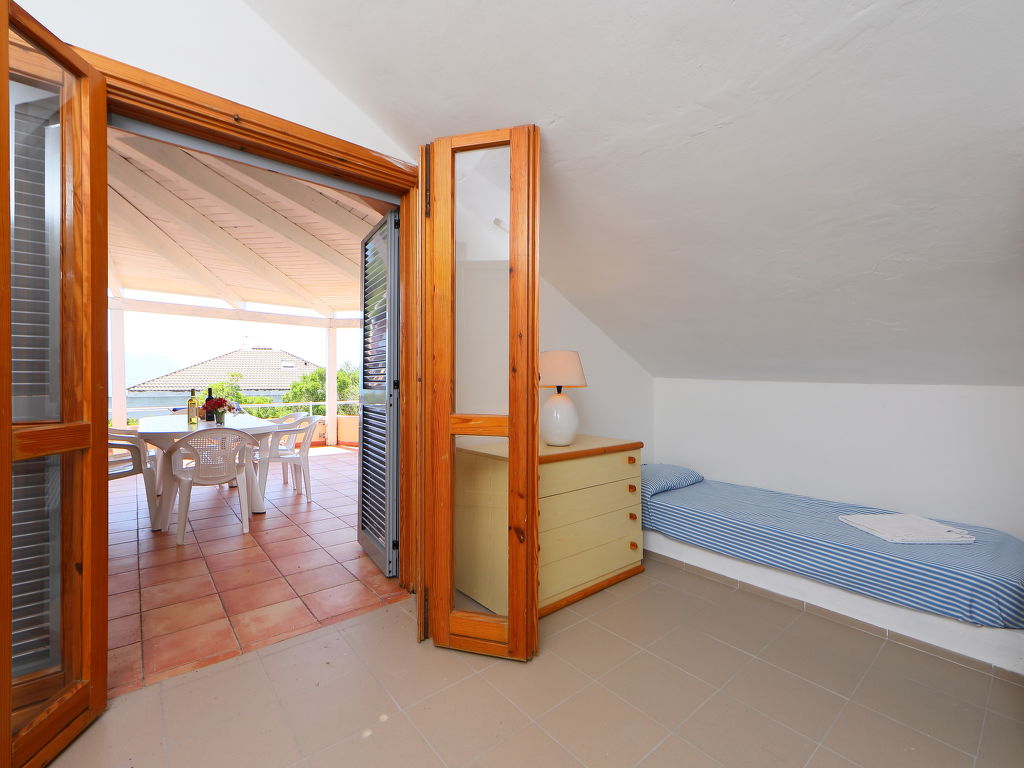 "Vista Mare 1 (GOA611)", 3-Zimmer-Wohnung 60 m2 im 1. Stock. Abgeschrägt, einfach eingerichtet: Wohn-/Esszimmer mit Sat-TV und Klimaanlage. Ausgang zur Terrasse. 1 Doppelzimmer. 1 Zimmer mit 3 Betten. Kochnische (4 Kochplatten, Tiefkühler). Dusche/Bidet/WC. Boiler (50 Liter). Terrasse. Terrassenmöbel. Sicht auf das Meer. Zur Verfügung: Waschmaschine. 1 Haustier/Hund erlaubt. IUN:Q3444