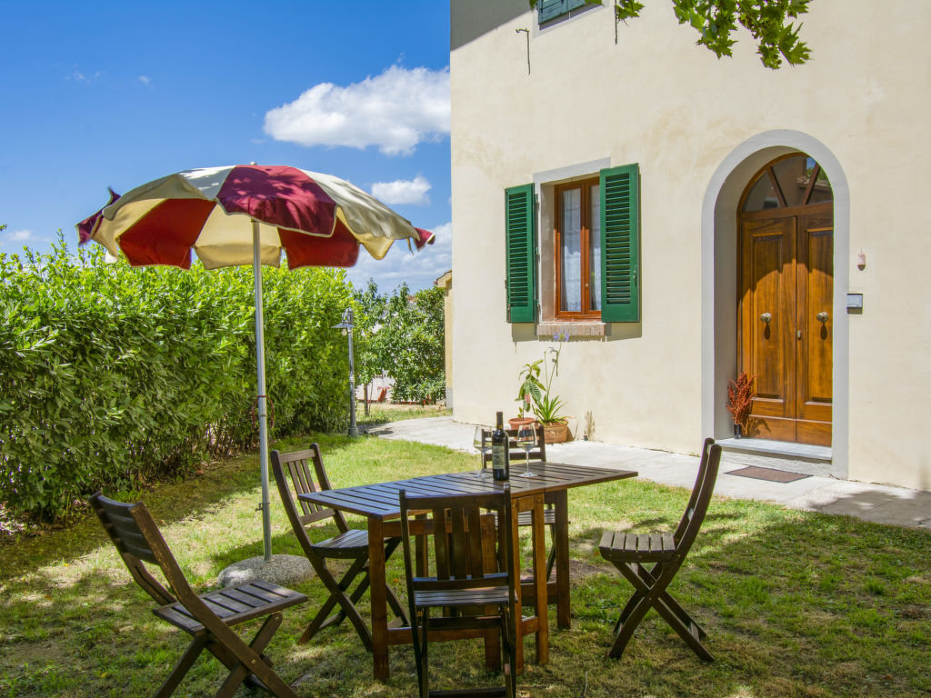"Cimabue", 3-Zimmer-Wohnung 60 m2, im Erdgeschoss. Geräumig, gemütlich eingerichtet: Wohn-/Esszimmer mit 1 Doppeldiwanbett und Sat-TV. Ausgang zum Garten, zum Gartensitzplatz. 1 Doppelzimmer. 1 Zimmer mit 2 Betten. Kochnische (4 Kochplatten, Backofen, Geschirrspüler, elektrische Kaffeemaschine). Dusche/WC. Heizung, Klimaanlage (extra). Kleiner Garten. Terrassenmöbel. Sehr schöne Sicht auf die Landschaft. Zur Verfügung: Internet (Wireless LAN). 1 Haustier/Hund erlaubt.