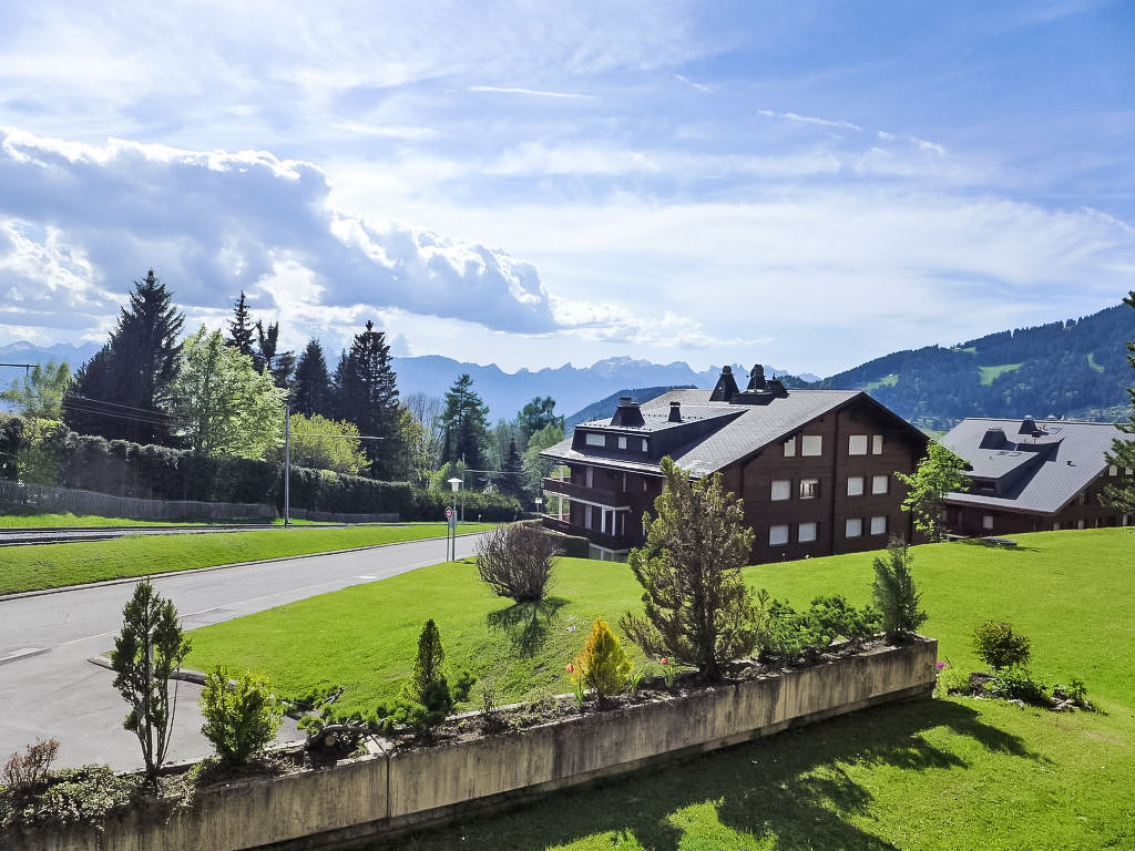 Roches Grises: Residenz "Topaze". Oberhalb von Villars, sonnige Lage, 200 m vom Skigebiet, Richtung Süden. Im Hause: Fahrstuhl, Skiraum, Waschmaschine, Wäschetrockner (zur Mitbenutzung). Zufahrt bis zum Haus. Parkplatz (beschränkte Anzahl). Einkaufsgeschäft 900 m, Lebensmittelgeschäft, Restaurant 700 m, Bäckerei 800 m, Zentrum zu Fuss in 12 Minuten erreichbar, Bushaltestelle 1.2 km, Bahnstation "Roches Grises" 20 m, Hallenbad 1.6 km, Thermalbad "Lavey-les-Bains" 19 km. Sporthafen 25 km, Golfplatz (18 Loch) 7 km, Tennishalle, Sportzentrum 350 m, Bergbahn 20 m, Gondelbahn 1.9 km, Skischule 1.3 km, Kinderskischule 350 m, Eisfeld 1.6 km, Kinderspielplatz 600 m. Der gratis Skibus fährt zum Skigebiet Villars. Bitte beachten: In diesem Haus sind weitere Ferienwohnungen mietbar.