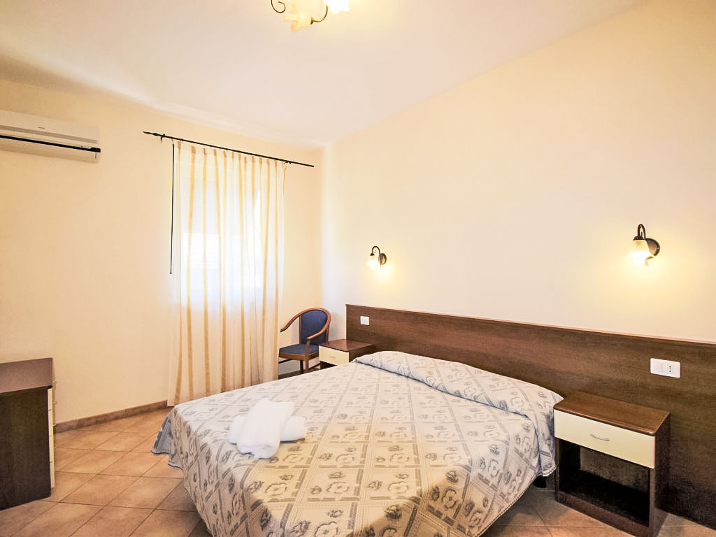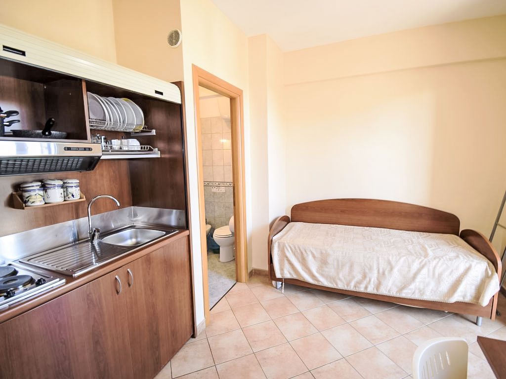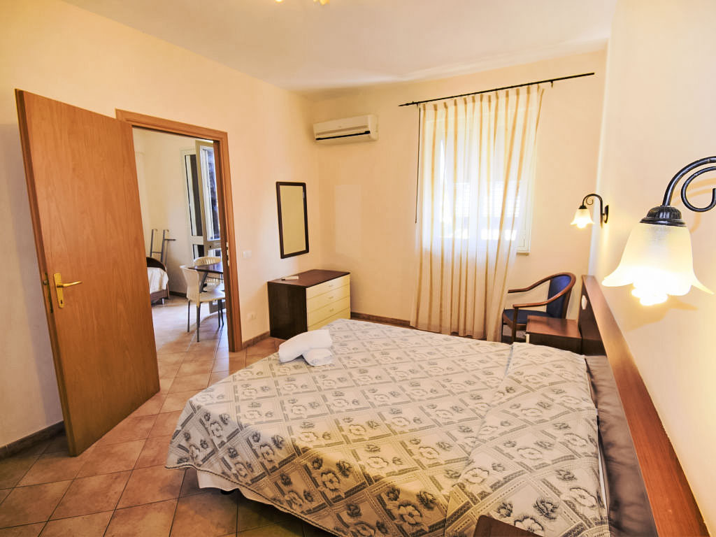 2-Zimmer-Wohnung 30 m2 im 1. Stock. Objekt geeignet für 2 Erwachsene + 2 Kinder. Einfach und zweckmässig eingerichtet: Wohn-/Schlafzimmer mit 1 x 2 Etagenbetten. Ausgang zum Balkon. 1 Doppelzimmer mit Klimaanlage. Kleine Kochnische (2 Kochplatten). Dusche/Bidet/WC. Klimaanlage (extra). Kleiner Balkon 3 m2. Balkonmöbel. Sicht auf das Meer und das Schwimmbad. Zur Verfügung: Haartrockner. Internet (Wireless LAN, gratis). Parkplatz (1 Auto). Bitte beachten: Kühlschrank ohne Gefrierfach. Kein Fahrstuhl.