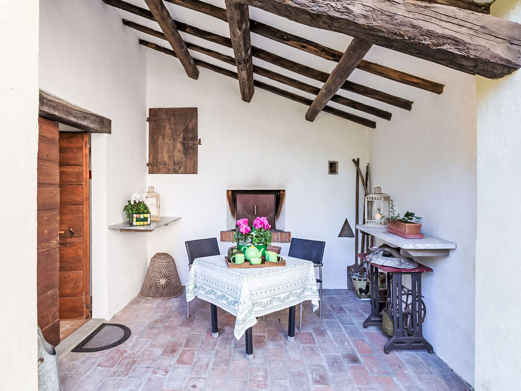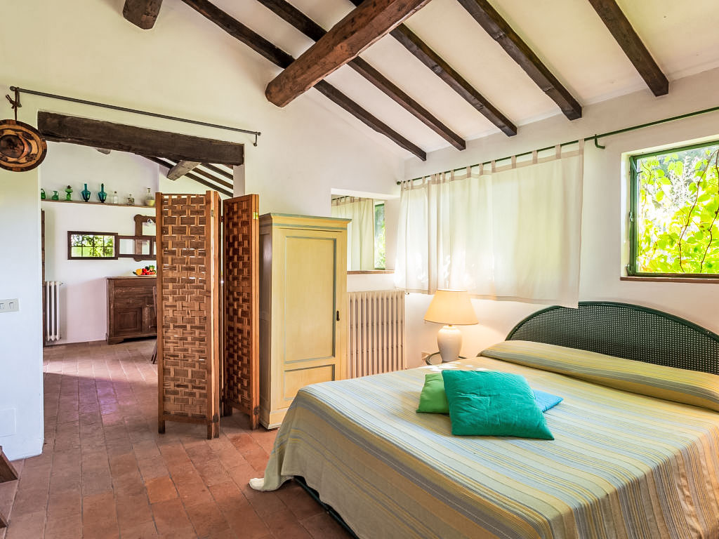 "Villa San Gervasio", 6-Zimmer-Haus 230 m2 auf 2 Stockwerken. Komfortabel und rustikal eingerichtet: grosses Wohnzimmer mit 1 Doppeldiwanbett und offenem Kamin. Esszimmer. Offenes Esszimmer mit Küchenblock und TV. 1 offenes Doppelzimmer. Küche (4 Kochplatten, Backofen, Geschirrspüler, Mikrowelle). Dusche/Bidet/WC, Bad/Dusche/Bidet/WC. Obergeschoss: grosses Wohnzimmer mit offenem Kamin und Sat-TV. 1 Doppelzimmer. 1 Zimmer mit 2 Betten. Dusche/Bidet/WC. Terrassenmöbel, Gartengrill. Zur Verfügung: Waschmaschine, Fliegengitter, Kinderhochstuhl, Babybett, Haartrockner. Internet (Wireless LAN, gratis).