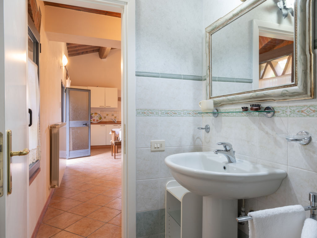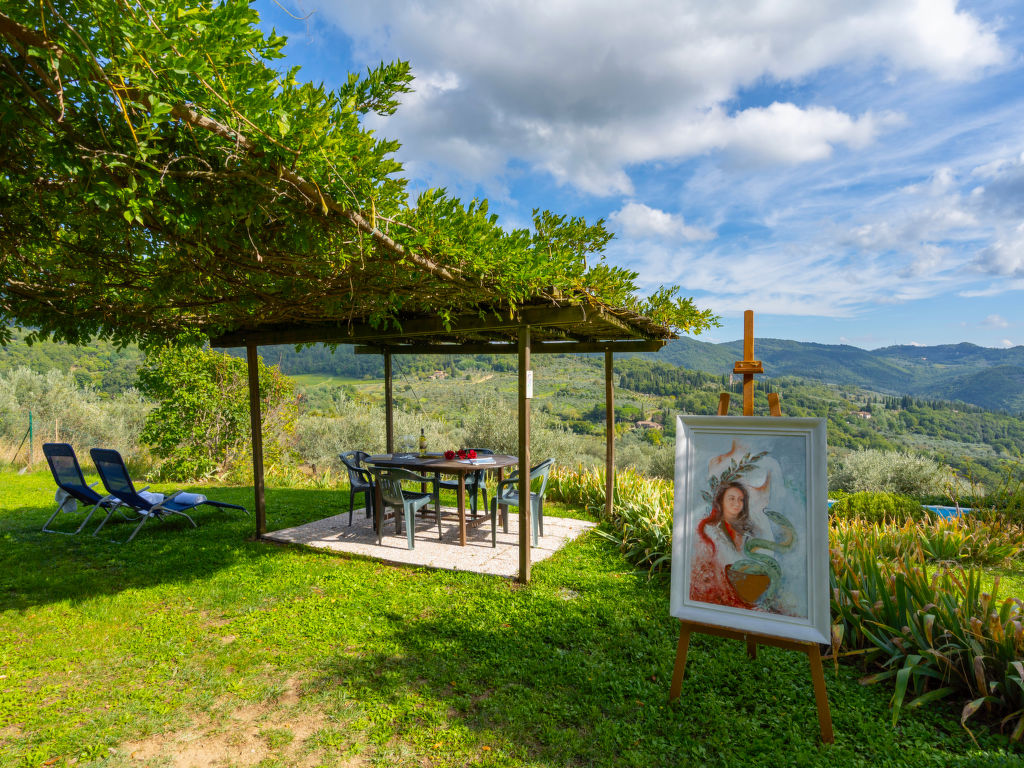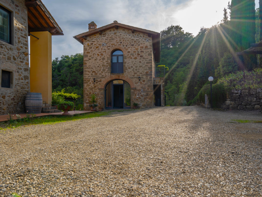 Herrenhaus 350 m.ü.M.. 2 Wohnungen im Ferienhaus. 2.4 km vom Zentrum von San Polo in Chianti, 17 km vom Zentrum von Greve in Chianti, 22 km vom Zentrum von Firenze, ruhige, sonnige, erhöhte Lage auf einem Hügel, im Grünen. Zur Mitbenutzung: Grundstück 10 ha, Aufstellpool (9 x 5 m, 135 cm tief, saisonale Verfügbarkeit: 04.Mai.-27.Sep.). Gartenmöbel, Grill. Im Hause: Waschmaschine (zur Mitbenutzung), Heizung vor Ort zu zahlen (01.11.-15.04.), Heizung nur verfügbar von 01.11. bis 15.04.. Zufahrt bis zum Haus (1 km Naturweg). Parkplatz auf dem Grundstück. Einkaufsgeschäft 2.4 km, Supermarkt 2.4 km. Golfplatz (18 Loch) 8 km. Nahe gelegene Sehenswürdigkeiten: San Casciano in Val di Pesa 22 km, Panzano in Chianti 25 km, Badia a Passignano 29 km, San Donato in poggio 32 km, Radda in Chianti 35 km, San Gimignano 55 km. Bitte beachten: Der Besitzer wohnt auf dem gleichen Grundstück. Die Wohnungen werden vor jedem neuen Eintrag mit Ozon gereinigt.