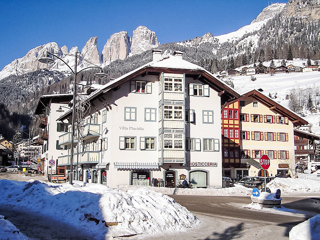 Schönes, komfortables Mehrfamilienhaus "Villa Placidia", auf 3 Stockwerken, renoviert. 11 Wohnungen im Ferienhaus. Im Ortszentrum von Campitello, 2 km vom Zentrum von Canazei, belebte, sonnige Lage, 200 m vom Skigebiet, an einer Hauptstrasse, Richtung Süden. Im Hause: Zentralheizung, Heizung nur verfügbar von 01.11. bis 30.04.. Im Winter bitte Schneeketten mitbringen. Öffentliche Parkplätze 500 m extra. Lebensmittelgeschäft 200 m, Supermarkt 500 m, Restaurant, Bar 200 m. Sessellift 200 m, Skibushaltestelle 20 m. Nahe gelegene Sehenswürdigkeiten: Sella Ronda 200 m, Lago di Carezza 21 km.