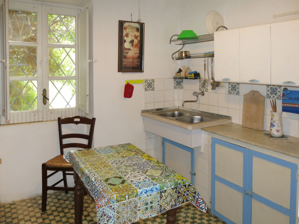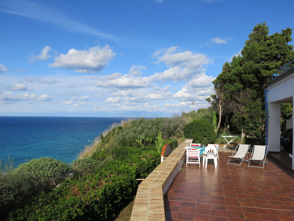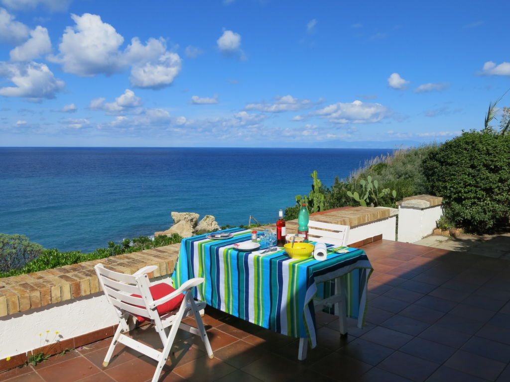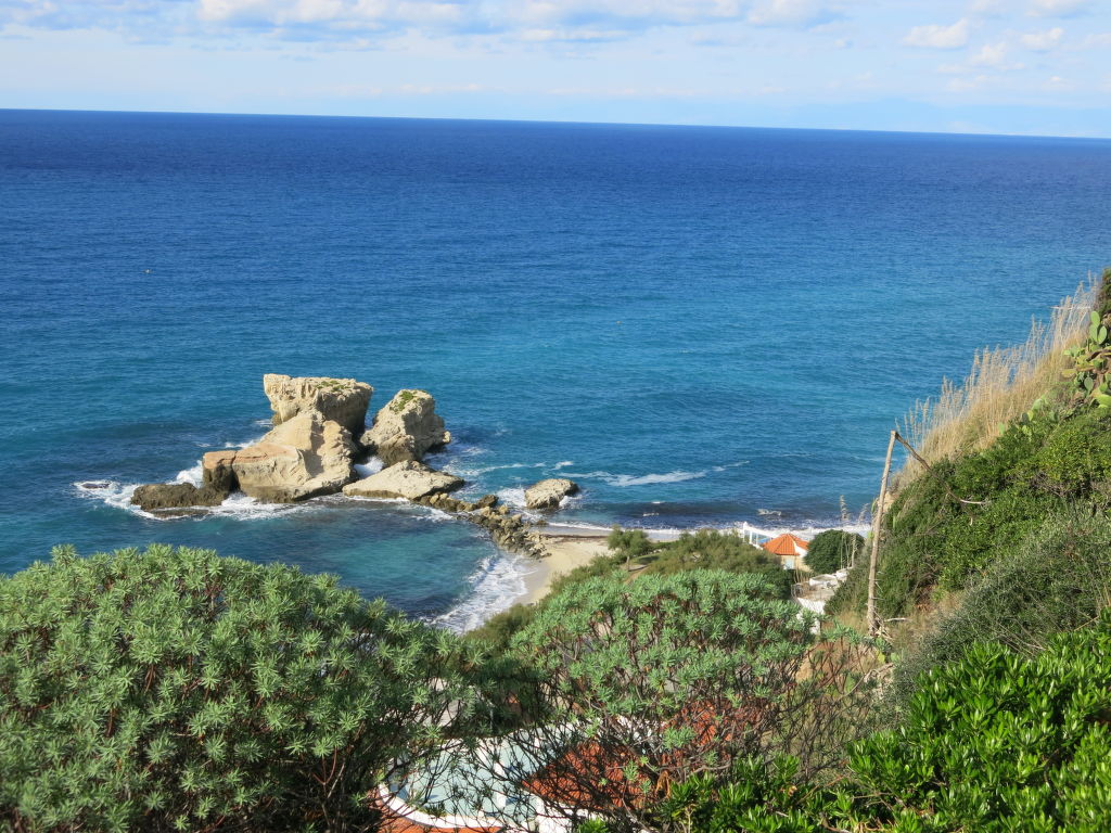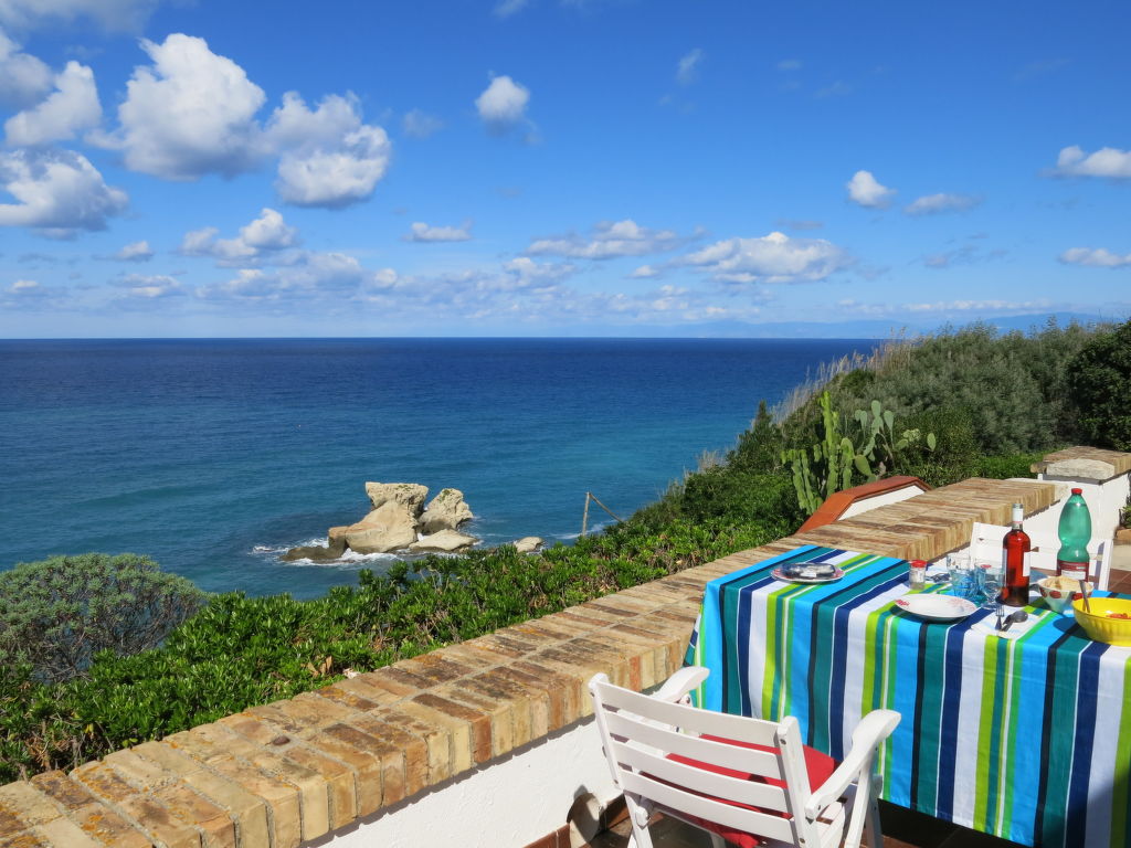 Zweifamilienhaus "Sulla Scogliera", 40 m.ü.M., umgeben von Bäumen und Feldern. Im Ortsteil Riaci, 2.5 km vom Zentrum von Tropea, 10 km vom Zentrum von Capo Vaticano, 30 km vom Zentrum von Vibo Valenzia, erhöhte Lage am Hang, 700 m vom Meer, direkter Zugang zum Strand. Zur Mitbenutzung: Terrassengarten, 3 ha mit Bäumen, Naturgarten, Obstgarten. 100 m lange Zufahrt (Naturweg). Supermarkt 2.5 km, Restaurant, Bar 700 m, Bahnstation "Ricadi" 1 km, Fähre "Tropea - Isole Eoliche" 2.5 km, Sandstrand 700 m. Bitte beachten: Der Besitzer wohnt auf dem gleichen Grundstück. Der Besitzer wohnt im selben Haus. Eisenbahnlinie 50 m vom Haus.