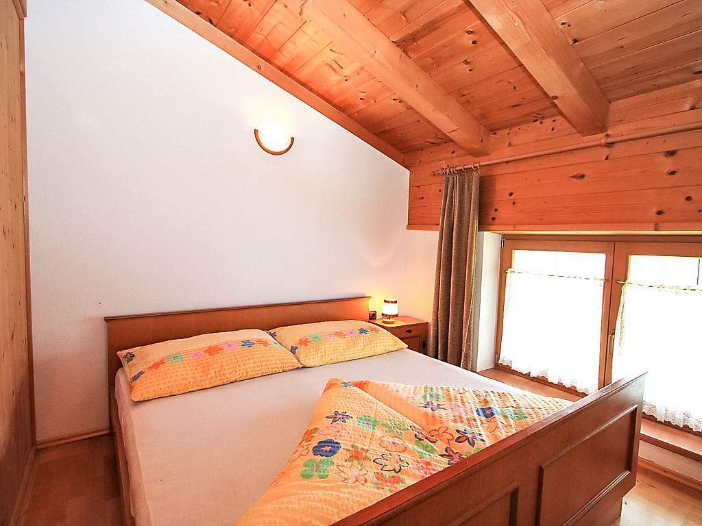 4-Zimmer-Wohnung 86 m2, im Dachgeschoss. Geschmackvoll und gemütlich eingerichtet: Eingang. 1 Zimmer mit 1 Bett und 1 franz. Bett (140 cm). 2 Doppelzimmer. Wohnzimmer mit Sat-TV (Flachbildschirm). Ausgang zum Balkon. Offene Küche (Backofen, Geschirrspüler, 4 Glaskeramikherd Platten) mit Essecke. Ausgang zum Balkon. Bad/WC. Balkon. Herrliche Panoramasicht auf die Berge, das Tal und die Landschaft. Zur Verfügung: Internet (Wireless LAN, extra). Hohe Raumhöhe, Sichtdachstuhl.