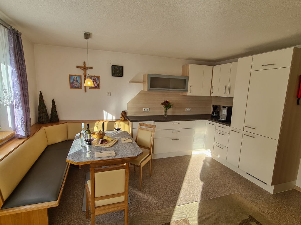 Das Dreifamilienhaus steht in sonniger Aussichtslage auf ca. 1400 m Höhe im Ortsteil Klasen. Anreise über Kappl Dorf (nicht Abzweigung Holdernach) Herrlicher Blick ins Tal und auf die Gipfel der Samnaungruppe. Ortsmitte Kappl-Dorf 3 km. Talstation der Diasbahn 3,5 km. Brötchenservice. Möbilierter Balkon. Kleiner Garten mit Freisitz, Gartenmöbeln, Sonnenschirm und Grill. Zufahrt über schmale Bergstraße. Parkmöglichkeit für 2 Pkw. Gute, gemütliche Einrichtung. Laminatböden. Sat-TV. Internetzugang (WLAN, inklusive). Öl-Zentralheizung. Hinweis: Rauchen ist in der Wohnung nicht gestattet. Winter-Infos: Talstation der Diasbahn 3,5 km. Zufahrt über Bergstraße, Schneeketten können erforderlich sein. Skibushaltestelle (2x vormittags/nachmittags) am Haus. Skischuhtrockner.
