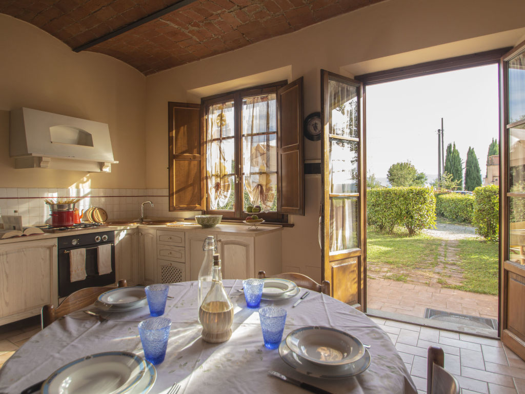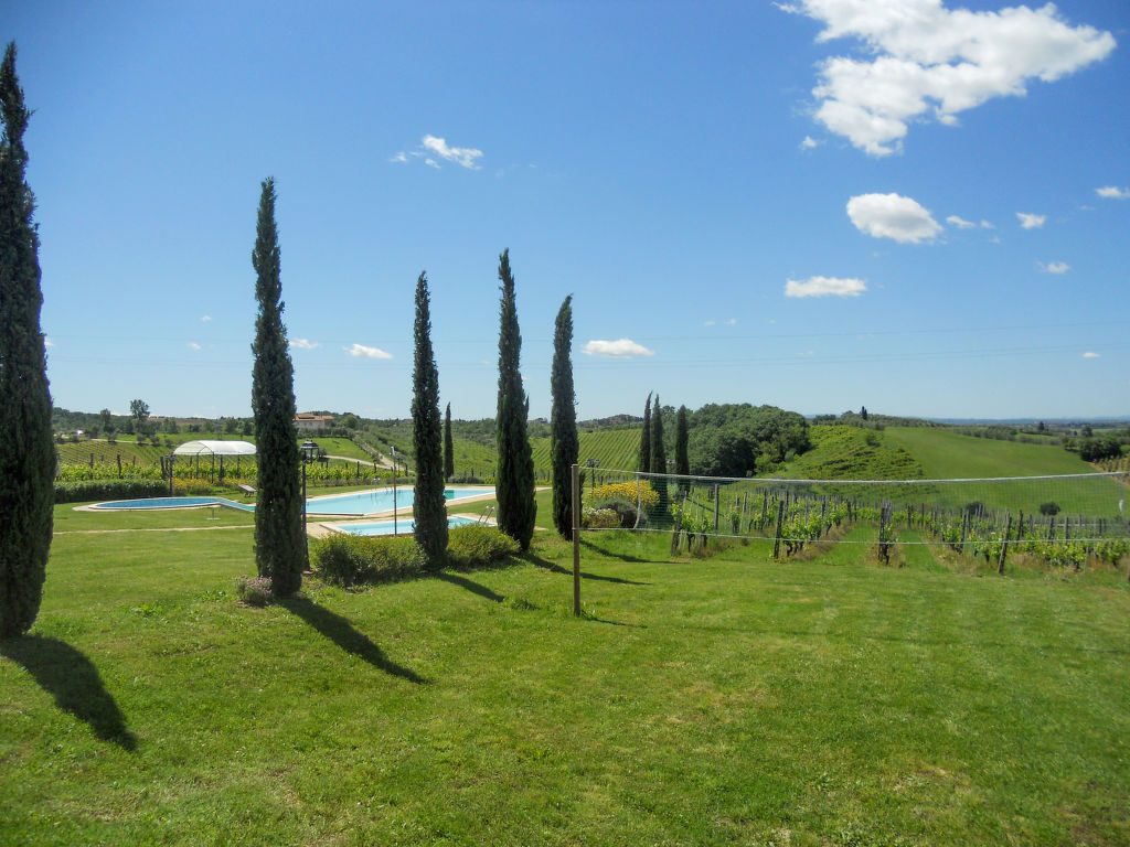 Landwirtschaftlicher Betrieb "Corte in Poggio", umgeben von Weinbergen. 9 Wohnungen in der Residenz. 6.5 km vom Zentrum von Cerreto Guidi, 12 km vom Zentrum von Vinci, 45 km vom Zentrum von Firenze, sonnige Lage auf einem Hügel, im Grünen. Zur Mitbenutzung: Grundstück 110'000 m2 mit Bäumen, Wiese, Schwimmbad (14 x 7 m, 140 - 170 cm tief, saisonale Verfügbarkeit: 01.Mai.-05.Okt.). Kinderbecken, Aussendusche, Sprudelbad, Tischtennis, Boccia, Volleyballfeld, Terrasse, Gartenmöbel, Grill, Kinderspielplatz. Im Hause: Waschmaschine (zur Mitbenutzung, extra), Heizung vor Ort zu zahlen, Heizung nur verfügbar von 01.11. bis 15.04., Fahrräder vorhanden. Parkplatz auf dem Grundstück. Einkaufsgeschäft 1 km, Supermarkt 6.5 km, Sandstrand "Marina di Pisa" 65 km, Thermalbad "Montecatini Terme" 16 km. Nahe gelegene Sehenswürdigkeiten: San Miniato 15 km, Carmignano 27 km, Lucca 36 km, San Casciano Val di Pesa 46 km, Pisa 56 km, San Gimignano 57 km. Bitte beachten: geeignet für Familien. Ab Hof Verkauf von bäuerlichen Produkten. Der Besitzer wohnt auf dem gleichen Grundstück.
