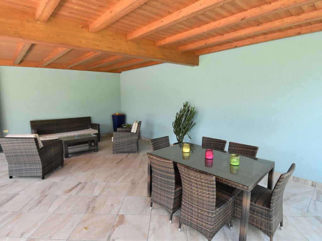 3-Zimmer-Haus 120 m2, im Erdgeschoss. Geräumig und hell, vollständig renoviert im Jahre 2020, komfortabel und stilvoll eingerichtet: grosses Wohnzimmer mit Sat-TV. Ausgang zum Garten, zum Gartensitzplatz. 1 grosses Doppelzimmer. Ausgang zum Garten. 1 grosses Doppelzimmer. Ausgang zum Garten. Offene Küche (Backofen, Geschirrspüler, 4 Flammen, Mikrowelle, Tiefkühler, elektrische Kaffeemaschine) mit Esstisch. 2 Duschen/Bidet/WC. G-Heizung, Klimaanlage (extra). Grosser Gartensitzplatz 56 m2, überdacht. Terrassenmöbel, Gartengrill, Loggia, Sitzplatz. Zur Verfügung: Fliegengitter, Babybett. Internet (Wireless LAN, gratis). Parkplatz. Bitte beachten: geeignet für Familien. Nichtraucher-Haus. Eigener Eingang, Feuerlöscher.
