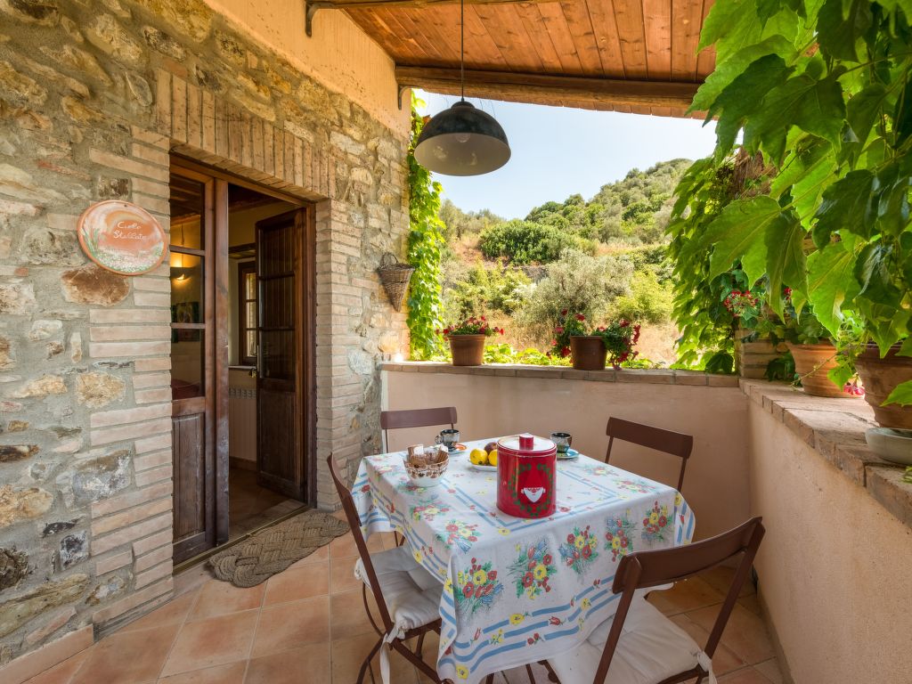 "Cielo Stellato", 3-Zimmer-Wohnung 50 m2 auf 2 Stockwerken, im Obergeschoss. Rustikal und gemütlich eingerichtet: Obergeschoss: (Aussentreppe) Wohn-/Schlafzimmer mit 1 Doppeldiwanbett und Esstisch. Ausgang zum Balkon. Offene Küche (Backofen, 4 Flammen, Toaster, Wasserkocher, Tiefkühler, elektrische Kaffeemaschine). 2. Obergeschoss: 1 offenes Zimmer mit Vorhang mit 1 franz. Bett (160 cm), Klimaanlage. 1 abgeschrägtes, offenes Zimmer mit 1 Bett (120 cm), Klimaanlage. Dusche/WC. G-Heizung. Terrasse überdacht. Terrassenmöbel. Zur Verfügung: Kinderhochstuhl, Babybett. Internet (Wireless LAN, gratis). Bitte beachten: Nichtraucher-Unterkunft. 1 Haustier/Hund erlaubt.