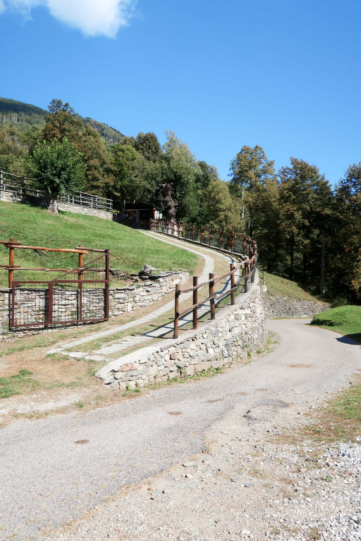 Rustikales Haus "Quang", 800 m.ü.M., umgeben von Wiesen. Oberhalb von Garzeno, im Weiler Quang, 2.5 km vom Zentrum von Garzeno, 60 km vom Zentrum von Como, 50 km vom Zentrum von Lugano, am Hang, 200 m vom Waldrand, 12 km vom See. Zur Mitbenutzung: Grundstück (eingezäunt), Rasen. 2.5 km lange schmale Zufahrt (Bergstrasse). Treppenweg bis zum Haus. Parkplatz beim Haus. Einkaufsgeschäft 2.5 km, Supermarkt 11 km, Bahnstation "Como" 60 km, Grasstrand "Dongo" 12 km, Freibad 15 km. Golfplatz (18 Loch) 30 km. Nahe gelegene Sehenswürdigkeiten: Museo Barca Lariano, Giardino del Merlo, Chiesa di San Bernardo, Lake Como Adventure Park. Bekannte Seen in der Umgebung sind gut erreichbar: Lago di Novate. Wandergebiete: Valle Albano. Auf dem Grundstück Tierhaltung. Bitte beachten: Tiere in der Umgebung.