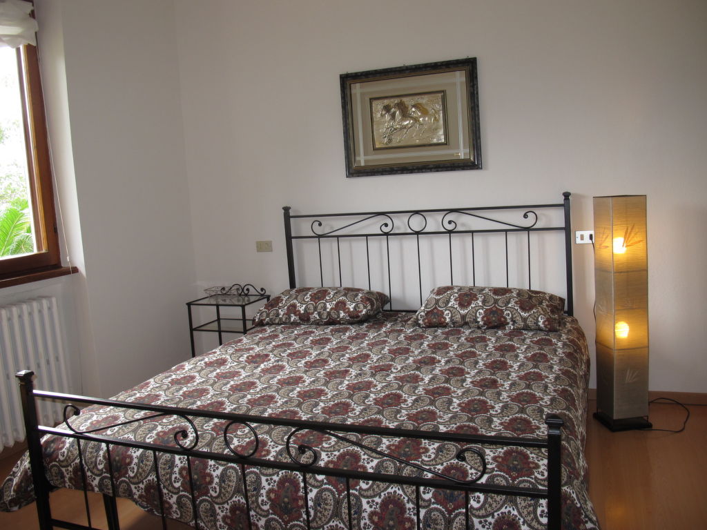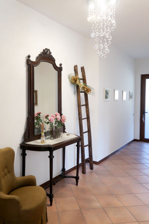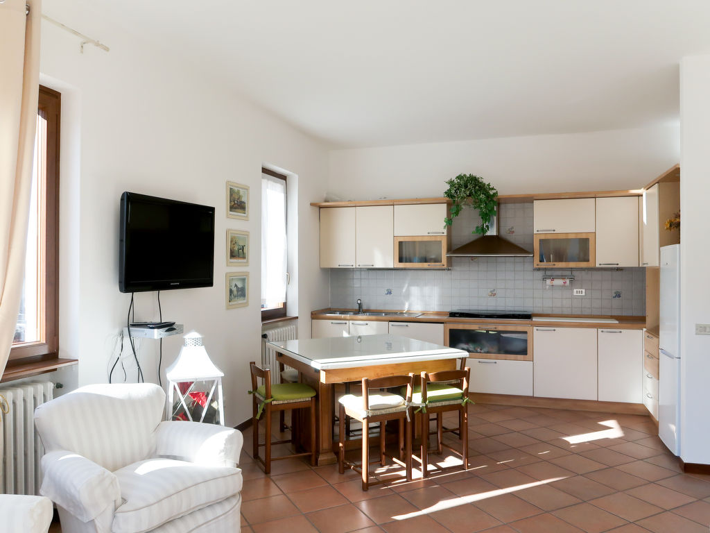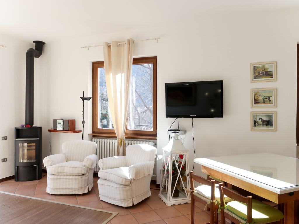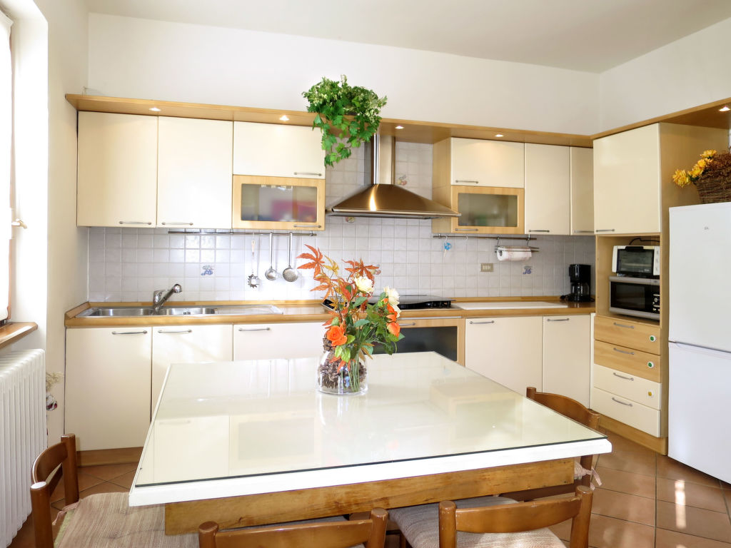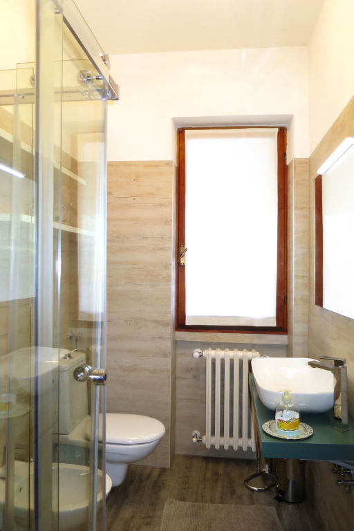 3-Zimmer-Wohnung, Erdgeschoss/Tiefparterre (Hanglage), ca. 86 m². Separater Zugang. Wohnraum mit Sitzcouch, 2 Sesseln, Holzofen, Essplatz und Terrassenausgang, offen zur Küche (6 Flammen, Backofen, Mikrowelle, Geschirrspüler, Kühl-/Gefrierkombination, Kaffeemaschine, Wasserkocher, Toaster). Schlafzimmer mit Doppelbett und Einzelbett. Doppelzimmer. Dusche/WC. CIR: 013063-CNI-00001
