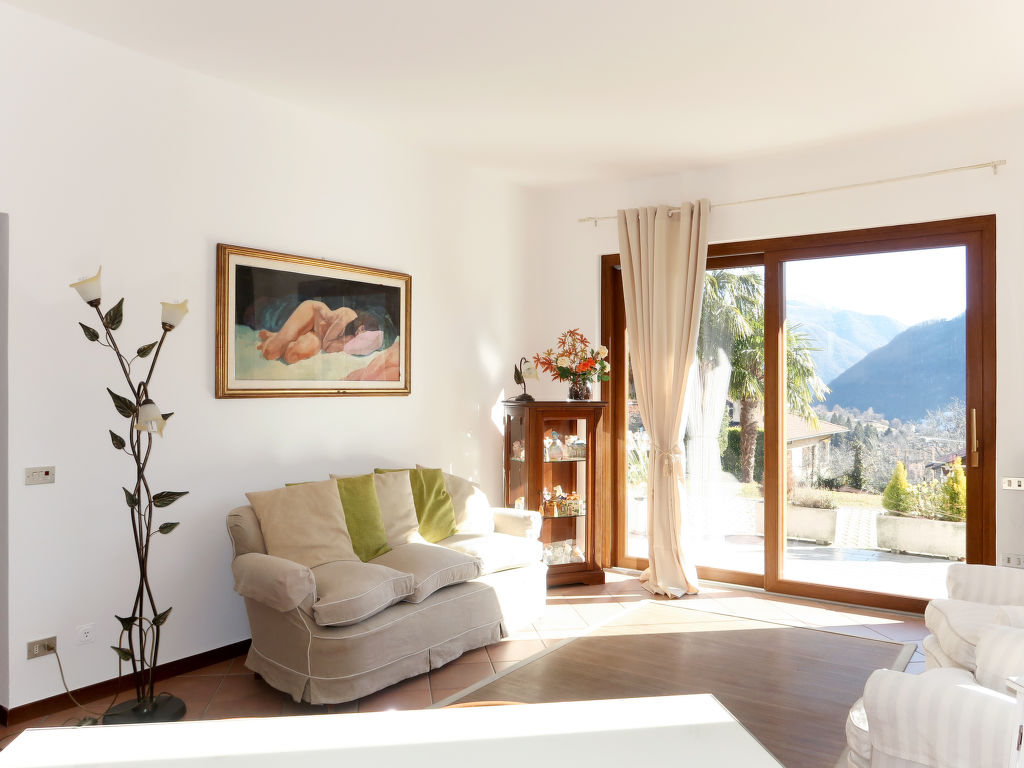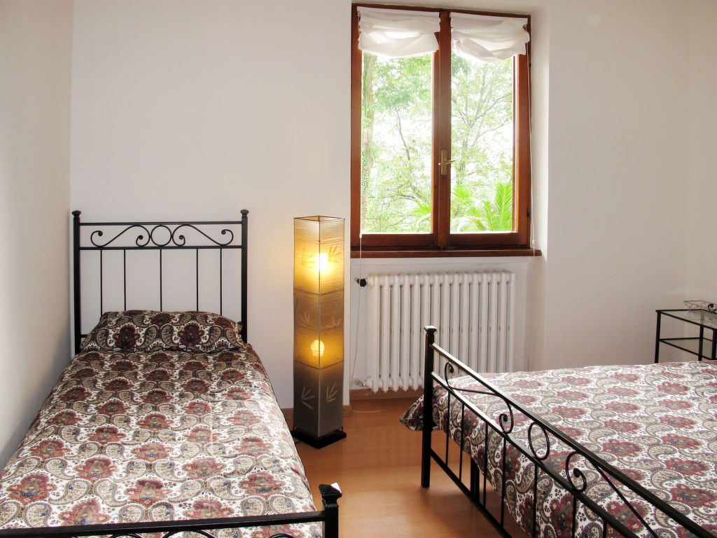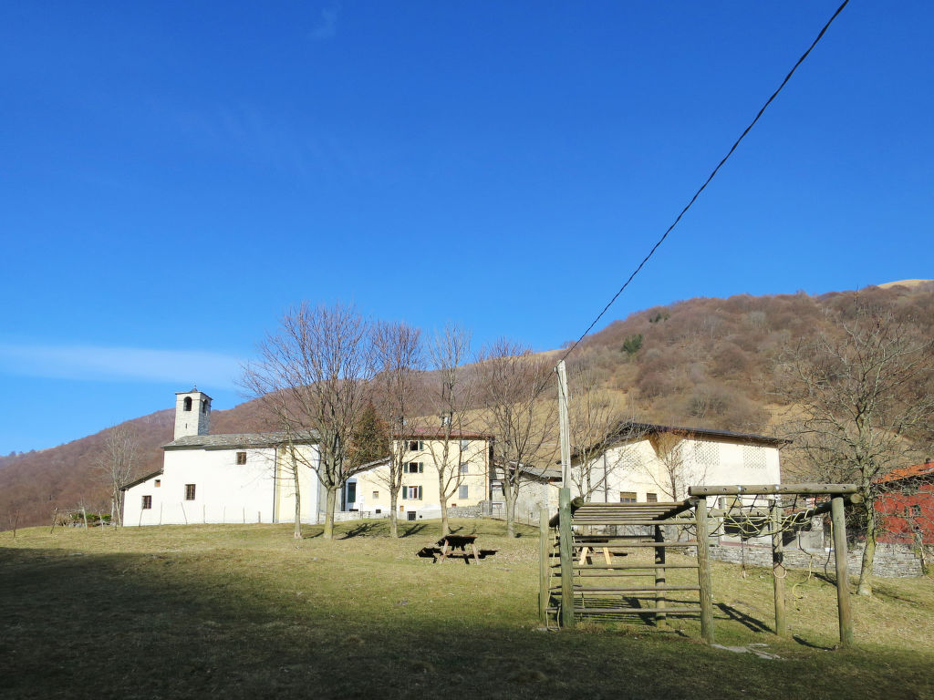 Das Zweifamilienhaus PAOLA steht in sonniger Hanglage, auf ca. 550 m Höhe, in einem locker bebauten Wohngebiet von Cerano d'Intelvi, Ortsmitte ca. 400 m. Geschäfte des täglichen Bedarfs in San Fedele, 5 km. Argegno am Comer See 8 km. Ca. 1000 m² großes umzäuntes Hanggrundstück (Einfahrtstor) mit Rasen, Bäumen und Blumenkübeln zur gemeinsamen Nutzung mit den Besitzern, die im Obergeschoss wohnen und im Garten einen größeren Hund halten (Zwinger). 2 Parkplätze auf dem Grundstück. Unseren Gästen stehen der untere Teil des Gartens mit Freisitz (4 Sonnenliegen) und gemauertem Grill sowie eine möblierte Terrasse mit Markise zur alleinigen Nutzung zur Verfügung. Gute, freundliche Einrichtung. Fliesen- und Parkettboden. Sat-TV. Internetzugang (WLAN, inklusive). Abstellraum mit Waschmaschine, Bügeleisen/-brett. Gasheizung und Holzofen. Hinweis: Rauchen ist in der Wohnung nicht gestattet.