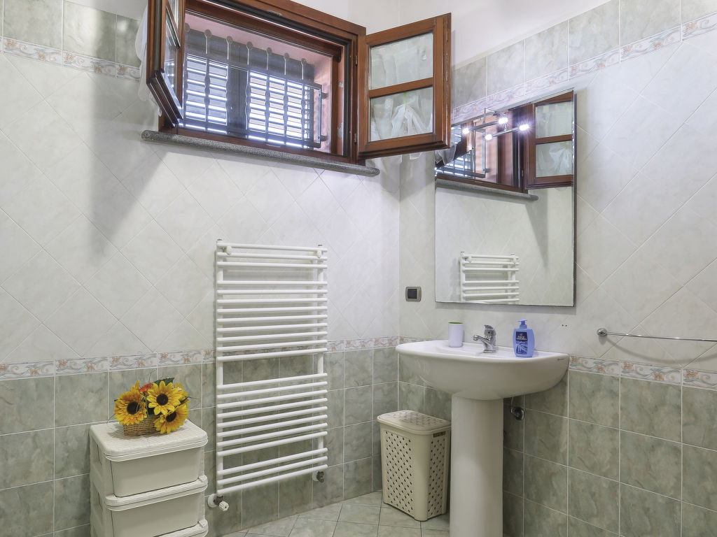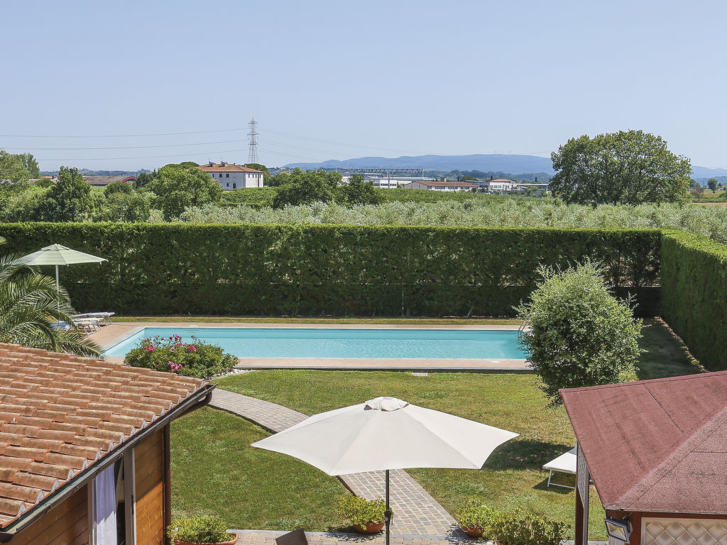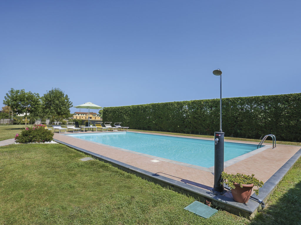 Sehr schönes, alleinstehendes Landhaus "Casolare Lavoria", umgeben von Wiesen und Feldern. 2 Wohnungen im Ferienhaus. Im Weiler Lavoria, 9 km vom Zentrum von Crespina, 1.6 km vom Zentrum von Cenaia, 27 km vom Zentrum von Pisa, alleinstehende Lage, 25 km vom Meer. Zur Mitbenutzung: Grundstück 3'000 m2 (eingezäunt) mit Wiese, Liegewiese, Schwimmbad (12 x 6 m, 120 - 160 cm tief, saisonale Verfügbarkeit: 09.Mai.-19.Sep.) mit Salzelektrolyse-Reinigungssystem. Aussendusche, Terrasse, Gartenmöbel. Zur Alleinbenutzung: kleiner, gepflegter Garten 300 m2 (eingezäunt) mit Rasen. Sitzplatz, Gartenmöbel, Grill, begrünter Innenhof. 200 m lange Zufahrt (Naturweg). Parkplatz (für 4 Autos) auf dem Grundstück. Einkaufsgeschäft, Supermarkt 500 m. Golfplatz (18 Loch) 25 km. Bitte beachten: Die Residenz wird durch elektrische Tore geschlossen. Der Besitzer wohnt auf dem gleichen Grundstück. Autobahn 800 m vom Haus.