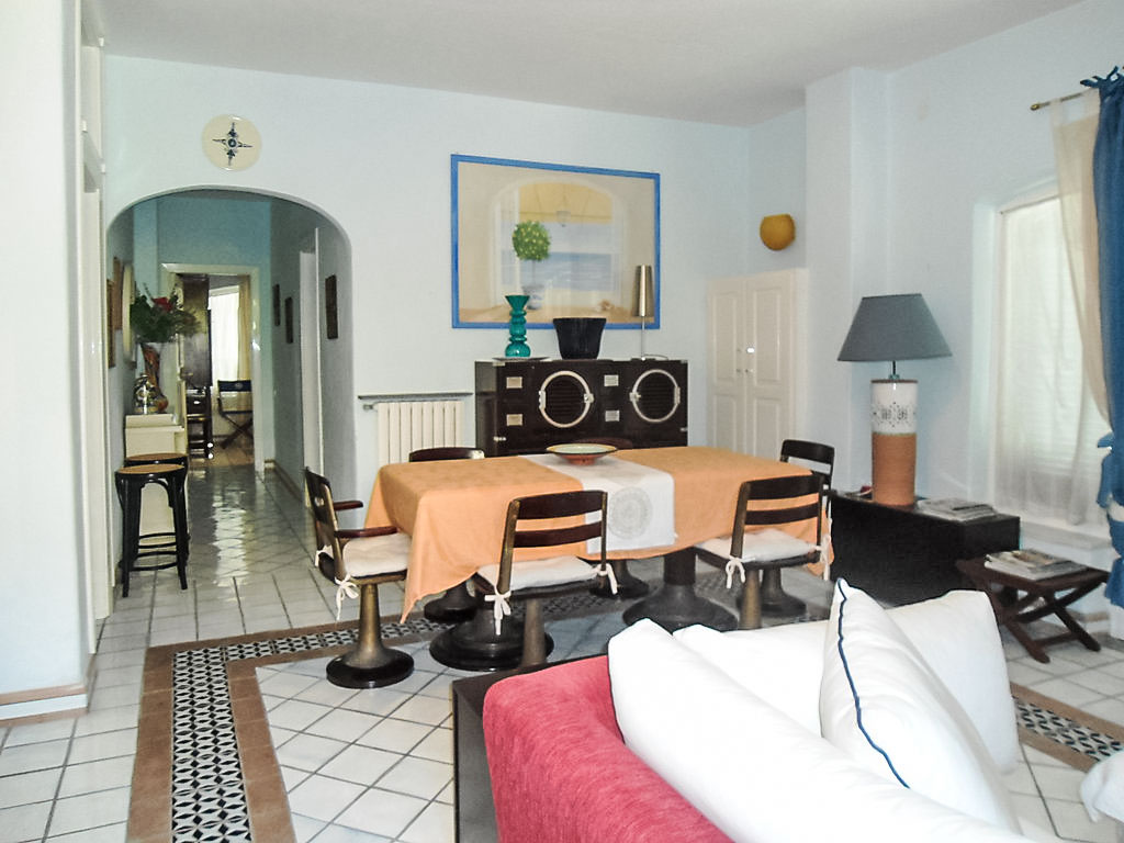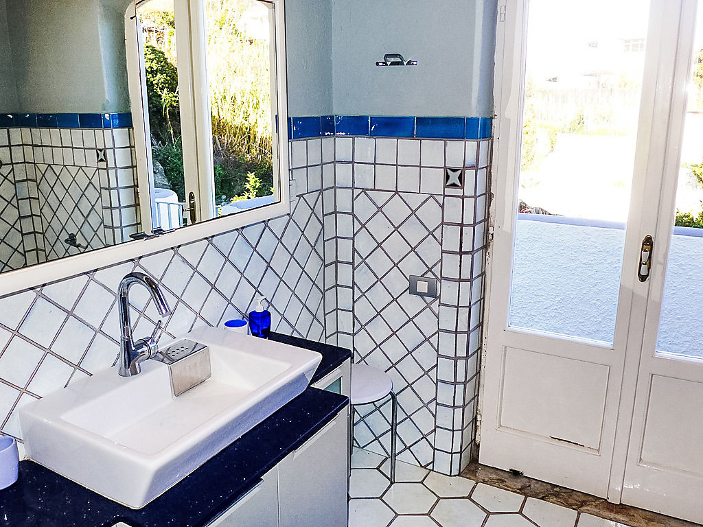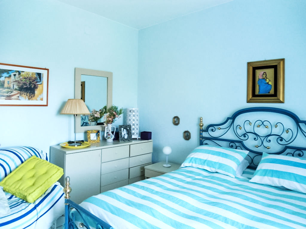 "Maestrale", 3-Zimmer-Wohnung 90 m2 im 1. Stock. Hell, komfortabel und schön eingerichtet: Wohn-/Esszimmer mit Panoramafenster mit Esstisch und TV (Flachbildschirm), DVD. Ausgang zum Gartensitzplatz. 1 Doppelzimmer. Ausgang zur Terrasse. 1 Zimmer mit 3 Betten. Ausgang zum Balkon. Kleine Küche (4 Kochplatten, Mikrowelle). 2 Duschen/Bidet/WC. 2 Terrassen. Terrassenmöbel. Schöne Sicht auf das Meer, die Landschaft und die Ortschaft. Zur Verfügung: Waschmaschine. Internet (Wireless LAN, gratis). Geeignet für Familien.