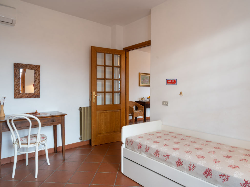 "Casa Paolo", 3-Zimmer-Haus 80 m2, im Obergeschoss. Teilweise renoviert im Jahre 2017, rustikal und gemütlich eingerichtet: grosses Wohn-/Esszimmer mit 1 Doppeldiwanbett und offenem Kamin (nur Deko), Esstisch, Sat-TV und DVD. 1 Zimmer mit 1 franz. Bett (160 cm). 1 Zimmer mit 1 Bett (80 cm), 1 Ausziehbett (2 x 80 cm). Ausgang zur Terrasse. Kleine, offene Küche (Mini-Backofen, Backofen, Geschirrspüler, 4 Flammen, Toaster, Wasserkocher, Tiefkühler, elektrische Kaffeemaschine) mit Bar. Dusche/WC. Heizung, Klimaanlage. Terrasse 50 m2, überdacht. Terrassenmöbel, Gartengrill, Liegestühle (2), Abstellkammer. Schöne Fernsicht auf die Landschaft, die Ortschaft und das Meer. Zur Verfügung: Waschmaschine, Bügeleisen, Babybett. Bitte beachten: Maximal 2 Haustiere/Hunde erlaubt. Eigener Eingang. CITRA: 008028-LT-0009
