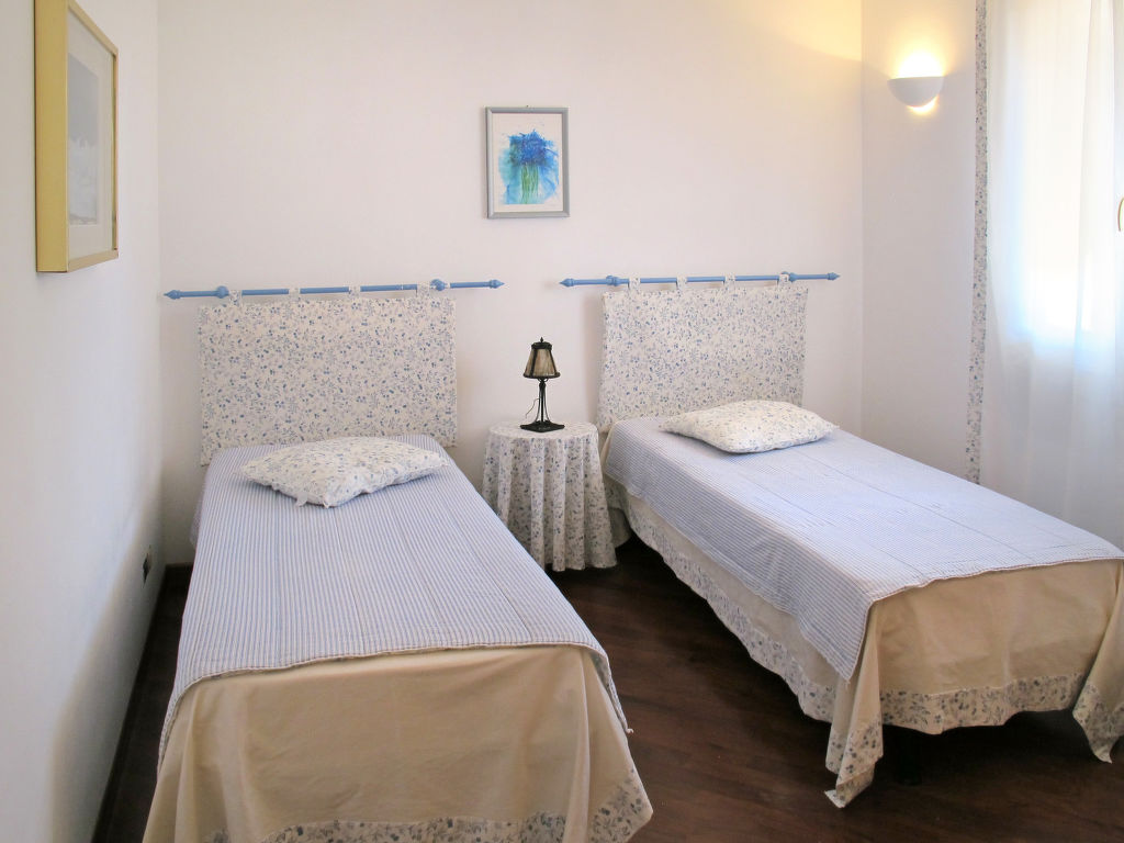 "Alberto", 9-Zimmer-Haus 250 m2 auf 3 Stockwerken. Geräumig, komfortabel und geschmackvoll eingerichtet: Wohn-/Schlafzimmer mit 1 Doppeldiwanbett (160 cm), Esstisch, Sat-TV und Holzofen. Ausgang zur Terrasse. 2 Zimmer, jedes Zimmer mit 1 Doppelbett. 1 Zimmer, ohne Fenster mit 2 Betten (80 cm). Offene Küche (Backofen, 4 Flammen, Toaster, Tiefkühler, elektrische Kaffeemaschine) mit Esstisch. Bad/Dusche/Bidet/WC. Obergeschoss: grosses Wohnzimmer mit offenem Kamin und Sat-TV. Ausgang zur Terrasse. 1 Zimmer mit 2 Betten (80 cm). Küche (Backofen, Geschirrspüler, 5 Flammen, Toaster, Wasserkocher, Mikrowelle, Tiefkühler, elektrische Kaffeemaschine). Bad/Bidet/WC. 2. Obergeschoss: 1 Zimmer mit begehbarer Kleiderschrank mit 1 Doppelbett und Dusche/WC. Ausgang zur Terrasse. 1 Zimmer mit 1 Doppelbett. 1 Zimmer mit 2 Betten. Bad/Dusche/WC. E-Heizung, Klimaanlage. Parkettböden. Abstellkammer. Sehr schöne Sicht auf das Meer, die Landschaft und das Städtchen. Zur Verfügung: Waschmaschine, Bügeleisen. Internet (Wireless LAN, gratis). Parkplatz (5 Autos). Bitte beachten: Nichtraucher-Haus. 1 Haustier/Hund erlaubt. Keine interne Verbindung zwischen den separaten Wohneinheiten. Gemeinschaftspool steht zur alleinigen Nutzung zur Verfügung. Flexibilität bei der Bettenaufteilung: Es stehen mehr Schlafmöglichkeiten zur Verfügung als die maximal zugelassene Personenzahl, diese darf dennoch nicht überschritten werden. CITRA: 008026-LT-0037