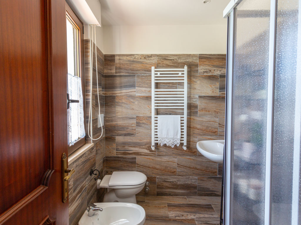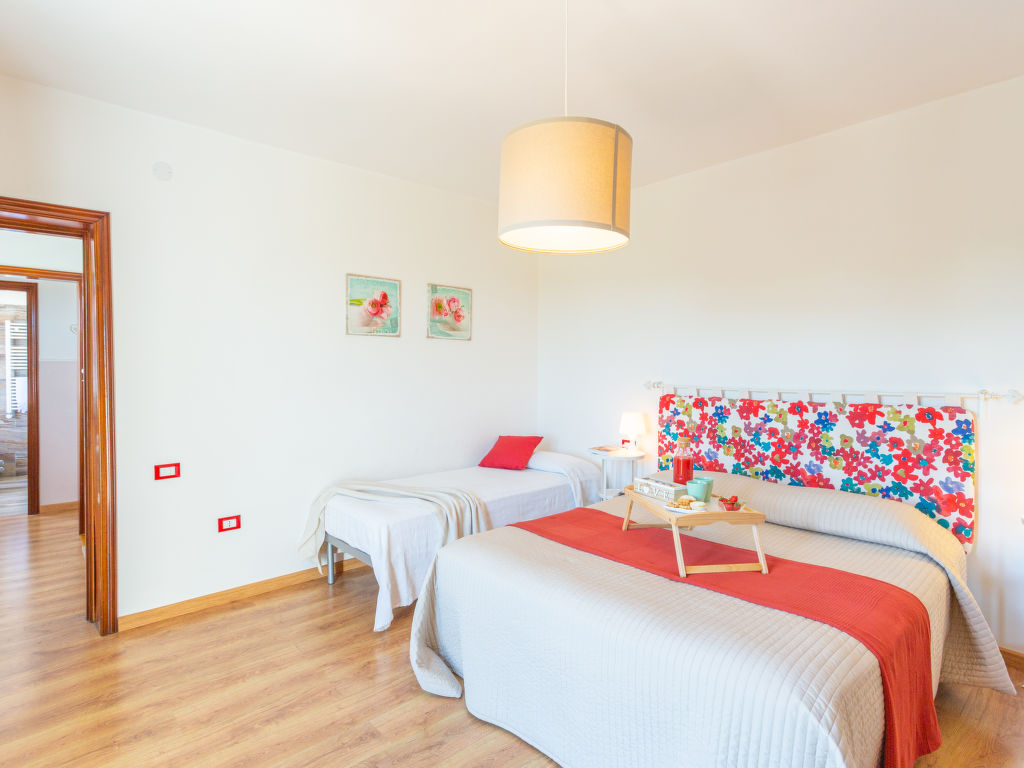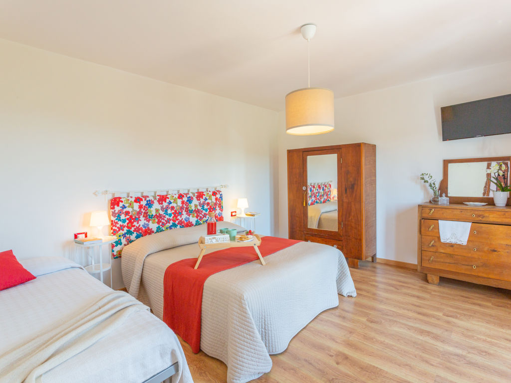 4-Zimmer-Hausteil, 2 Etagen, ca. 130 m². Separater Eingang ins Erdgeschoss: Wohnküche (4 Flammen, Backofen, Kühl-/Gefrierkombination, Toaster) mit Essplatz, Sitzcouch und Kamin, Terrassenausgang. Doppelzimmer mit Dusche/WC. Obergeschoss: Schlafzimmer mit Doppelbett und Einzelbett, Balkonausgang. Einzelzimmer. Dusche/WC.