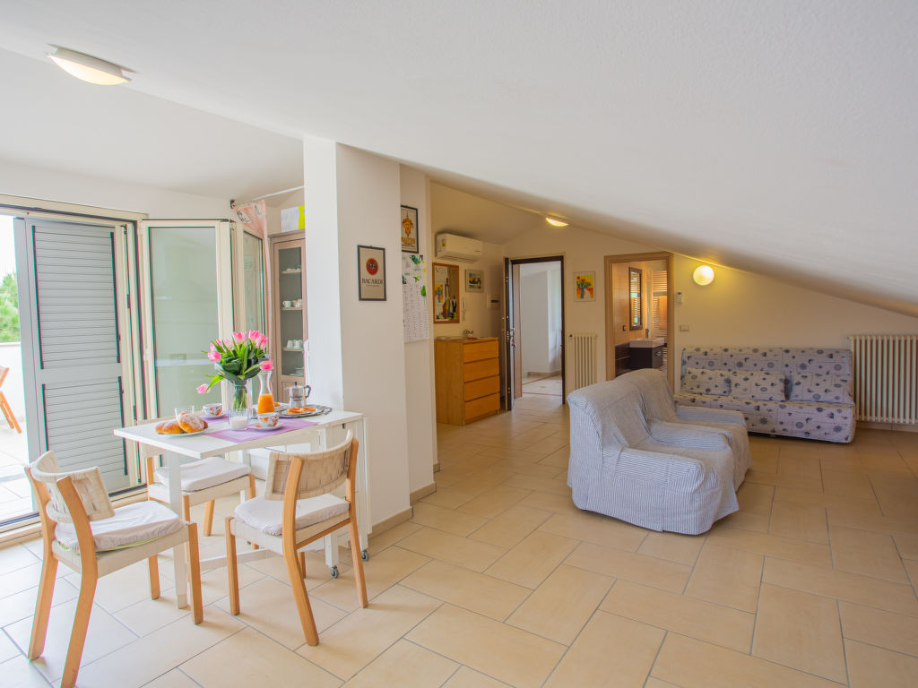 "Michela (PIT231)", 2-Zimmer-Wohnung 80 m2, im Dachgeschoss, Südostlage. Abgeschrägt, zweckmässig eingerichtet: Wohn-/Schlafzimmer, Deckenhöhe 80 - 220 cm mit 2 Schlafmöglichkeiten, Esstisch, Sat-TV und Radio. Ausgang zur Terrasse. 1 Zimmer mit 1 franz. Bett (160 cm). Ausgang zur Terrasse. Offene Küche (Backofen, Geschirrspüler, 4 Flammen, Toaster, elektrische Kaffeemaschine), Deckenhöhe 80 - 220 cm. Ausgang zur Terrasse. Bad/WC. G-Heizung, Klimaanlage. Terrasse 15 m2. Terrassenmöbel. Schöne Sicht auf das Meer und die Landschaft. Zur Verfügung: Waschmaschine, Kinderhochstuhl, Babybett. Internet (Wireless LAN, gratis). 1 Haustier/Hund erlaubt.