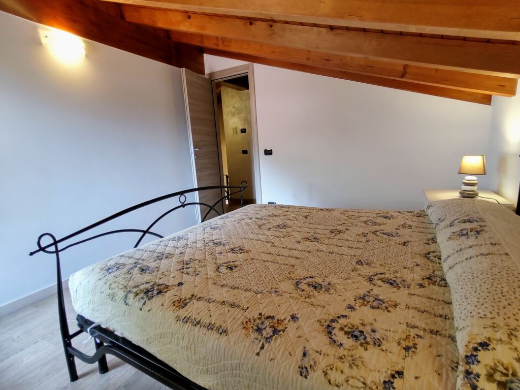 4-Zimmer-Wohnung, 2 Etagen, ca. 100 m². Zugang über Außentreppe (34 Stufen) in die 2. Etage: Wohnraum mit Sitzcouch, Kamin (nur Dekoration) und Balkonausgang, offene Küche (4 Induktionsfelder, Backofen, Geschirrspüler, Kühl-/Gefrierkombination, Kaffeemaschine, Wasserkocher, Toaster) mit Essplatz. Dusche/WC. Vom Wohnraum Treppe in die 3. Etage (offener Holzdachstuhl, Dachschräge): 2 Schlafzimmer, jeweils mit franz. Bett (1,60 m breit). Einzelzimmer. Bad/WC. CIR: 013226-CNI-00008
