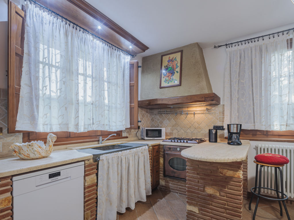3-Zimmer-Wohnung 90 m2 auf 2 Stockwerken. Schön und gemütlich eingerichtet: offenes Wohnzimmer mit Sat-TV (Flachbildschirm), DVD. Ausgang zur Terrasse. 1 Zimmer mit 1 franz. Bett (160 cm). Ausgang zur Terrasse. Grosse, offene Küche (Backofen, Geschirrspüler, 5 Flammen, Toaster, Wasserkocher, Mikrowelle, Tiefkühler, elektrische Kaffeemaschine) mit Esstisch, offenem Kamin (nur Deko), Holzofen. Dusche/WC. Obergeschoss: 1 Zimmer mit 1 franz. Bett (160 cm), Dusche/WC. G-Heizung. Grosse Terrasse überdacht, Laube. Terrassenmöbel, Gartengrill (mobil), Liegestühle (8). Zur Verfügung: Waschmaschine, Bügeleisen, Fliegengitter, Haartrockner. Internet (Wireless LAN, gratis). Parkplatz (eingezäunt, 1 Auto). Bitte beachten: Nichtraucher-Unterkunft. Eigener Eingang.