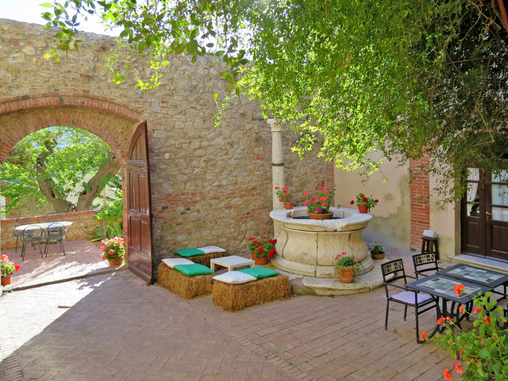 Das aktive Landgut FATTORIA IL SANTO, ein ehemaliger Weiler aus dem 15. Jhdt., liegt auf einem weitläufigen, ca. 1200 ha großen landwirtschaftlichen Besitz mit Feldern, Weiden (freilaufende Pferde und landestypische Maremmakühe), Olivenhainen und Wäldern. Herrlicher Rundumblick auf die sanftgewellte Hügellandschaft und den Monte Amiata. Um einen kleinen Innenhof mit antikem Brunnen gruppieren sich 5 aneinander gebaute Natursteingebäude. Gemütlicher, historischer Bauernhof "Il Santo", umgeben von Bäumen, Wiesen und Feldern. 25 Wohnungen in der Residenz. 6 km vom Zentrum von Pari, 34 km vom Zentrum von Montalcino, 30 km vom Zentrum von Siena, alleinstehende, erhöhte Lage auf einem Hügel, im Grünen. Zur Mitbenutzung: Grundstück 56 ha, Terrassengarten mit Pflanzen und Bäumen, Naturgarten, Wiese, Schwimmbad (20 x 14 m, 40 - 150 cm tief, saisonale Verfügbarkeit: 01.Jun.-30.Sep.). Ungleichmässige Schwimmbadform Dusche/WC im Poolbereich, Aussendusche, Tischtennis, Gartenmöbel, Grill. In der Anlage: Empfang, Tischtennis, Billard, Waschmaschine (zur Mitbenutzung, extra). Parkplatz auf dem Grundstück. Einkaufsgeschäft 6 km, Lebensmittelgeschäft 5 km, Supermarkt 15 km, Restaurant 2 km, Sandstrand "Marina di Grosseto" 65 km, Thermalbad "Petriolo" 2 km. Reitstall 10 km, Wanderwege ab Haus 50 m. Nahe gelegene Sehenswürdigkeiten: Monte Amiata 68 km. Ab Hof Verkauf von bäuerlichen Produkten. Bitte beachten: Tiere in der Umgebung. Badekappenpflicht. Rezeption (stundenweise besetzt) mit Internetzugang (WLAN, inklusive) und Direktverkauf von hauseigenem Olivenöl, Gemüse und Honig. Die Pferde und Maremmakühe laufen frei und können gelegentlich bis zum Weiler kommen.
