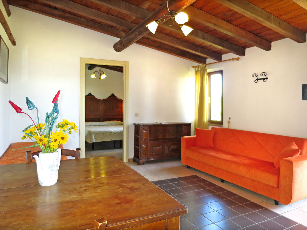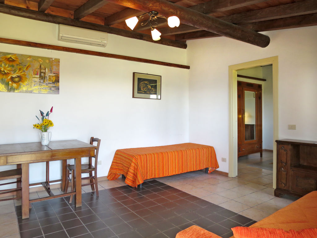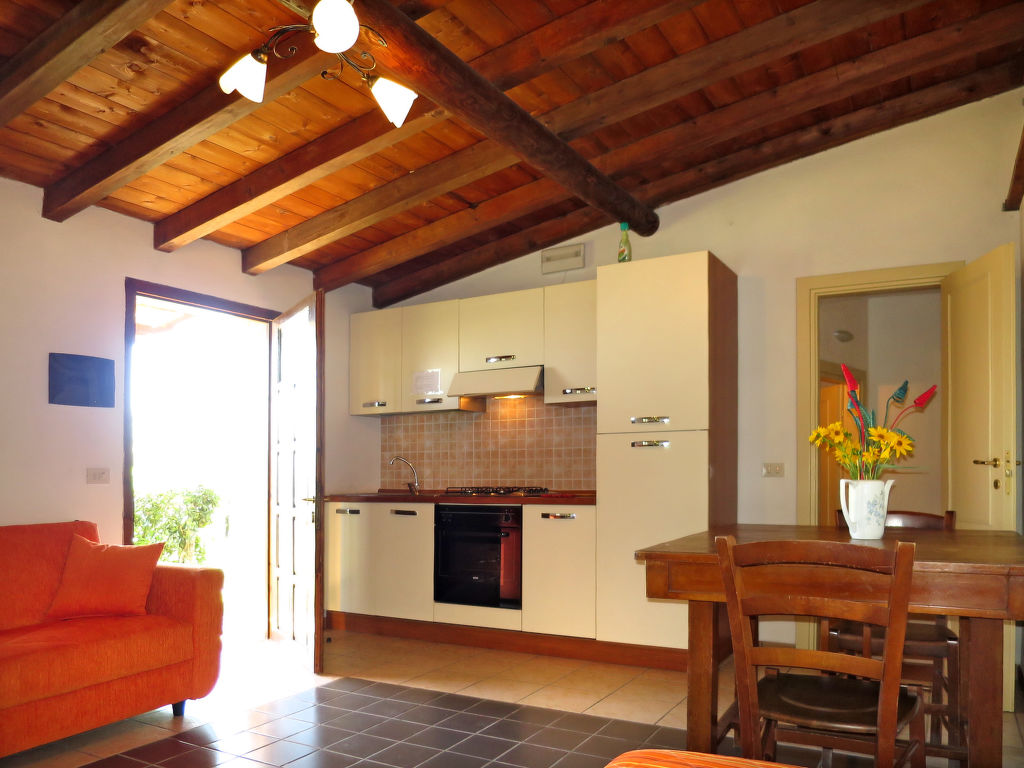 "Ginestre 11", 2-Zimmer-Reihenhaus 41 m2, im Erdgeschoss. Einfach und rustikal eingerichtet: Wohn-/Schlafzimmer mit 1 Bett (80 cm), 1 Diwanbett und Esstisch. Ausgang zur Terrasse. 1 Zimmer mit 2 Betten (80 cm). Kochnische (Backofen, 4 Flammen, Wasserkocher, Tiefkühler). Dusche/WC. Heizung, Klimaanlage. Gartensitzplatz teilweise überdacht. Terrassenmöbel. Sicht auf das Schwimmbad und die Landschaft. Zur Verfügung: Kinderhochstuhl, Babybett. Bitte beachten: Maximal 2 Haustiere/Hunde erlaubt. Eigener Eingang.