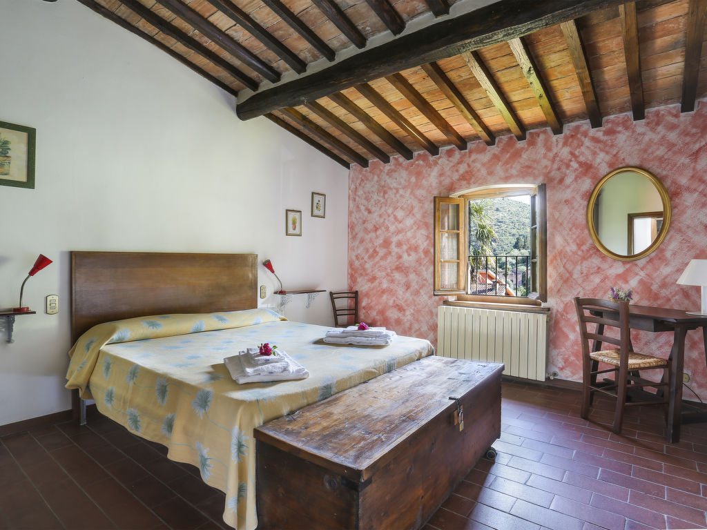 5-Zimmer-Haus 150 m2 auf 3 Stockwerken. Rustikal und gemütlich eingerichtet: Wohn-/Esszimmer mit offenem Kamin, Esstisch und Sat-TV. Offene Küche (Backofen, Geschirrspüler, 4 Flammen, Toaster, Tiefkühler, elektrische Kaffeemaschine). Ausgang zur Terrasse. Obergeschoss: 1 Zimmer mit 1 franz. Bett (160 cm). 1 Zimmer mit 2 Betten. Bad/Dusche/WC. 2. Obergeschoss: 1 Zimmer mit 1 franz. Bett (160 cm). 1 Zimmer mit 2 Betten. Dusche/WC. G-Heizung. Terrasse überdacht, Gartensitzplatz. Terrassenmöbel, Gartengrill, Liegestühle, Abstellkammer. Zur Verfügung: Waschmaschine, Bügeleisen, Kinderhochstuhl, Babybett. Internet (Wireless LAN, gratis). Bitte beachten: Nichtraucher-Unterkunft. Maximal 3 Haustiere/Hunde erlaubt.