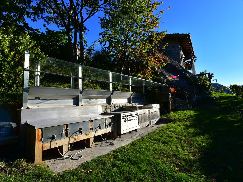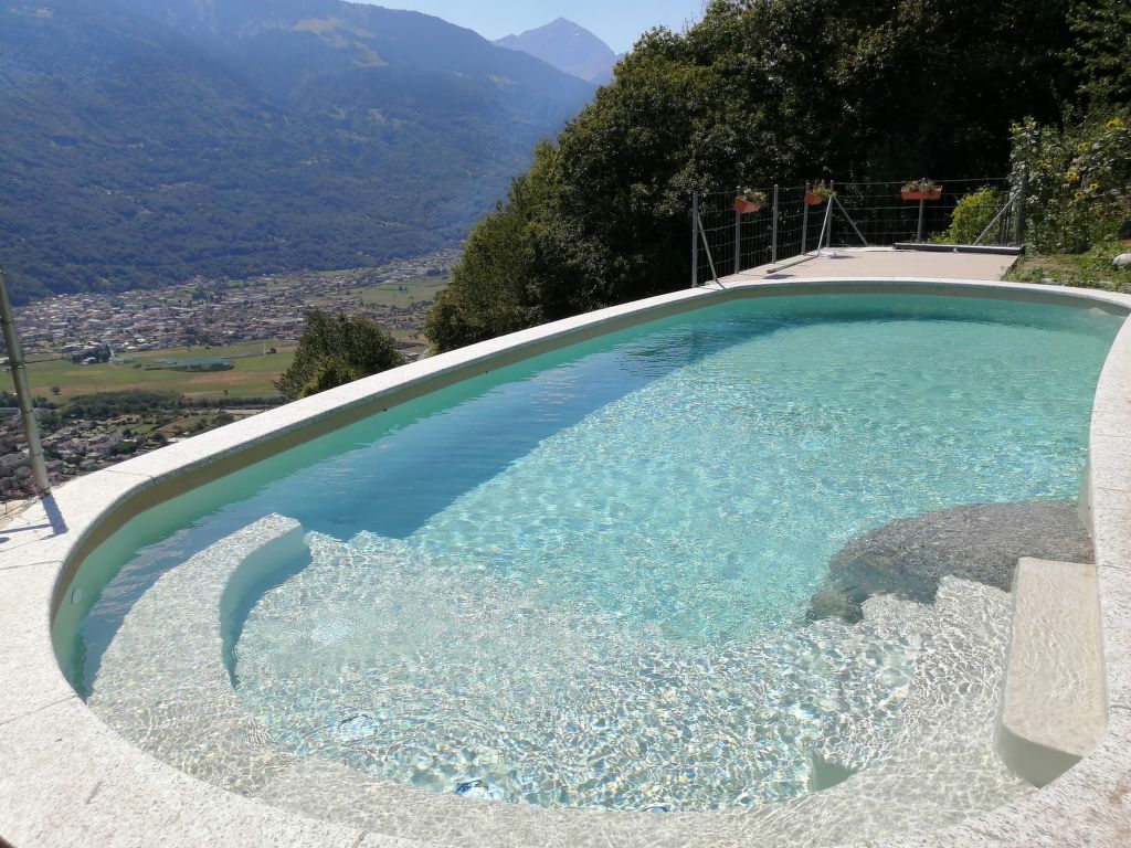 Das Natursteinhaus RUSTICO VIGNA steht südseitig in wunderbarer Panoramalage (570 m). Der Blick schweift über das ganze untere Veltlin, das Städtchen Morbegno und auf die gegenüberliegenden Orobischen Alpen. Civo mit kleinem Lebensmittelgeschäft 1 km unterhalb, Morbegno 5,5 km. Strände am Comer See erreicht man in Sorico (21 km) und Colico (23 km). Privatparkplatz, von hier ca. 150 m bergauf durch den Weinberg über mehrere Treppen zum Haus. Offenes, terrassiertes Hanggrundstück mit gepflegtem Gartenbereich, zahlreichen Obstbäumen, dem Gemüsegarten der Besitzer sowie einem kleinen Weinberg unterhalb des Hauses. Schöner, geschwungener Panoramapool (10x4m, 1,35m tief, 01.05.-30.09.) mit Poolterrasse. Außendusche. Mehrere Freisitze (jeweils Granitsteintisch/-bänke) verteilen sich auf dem Grundstück, teils unter schattigen Weinlauben. Kinderschaukel. Seitlich des Hauses ein großzügiger, teilüberdachter Grillbereich (gasbetriebener Steinplattengrill) mit Außenspüle. Terrasse mit Mobiliar, weitere Terrasse mit Granitsteintisch/-bank am Haus. Die Besitzer kommen etwa alle zwei Tage zur Gartenpflege. Das Haus wurde in liebevoller Detailarbeit komplett restauriert. Im Inneren wie im Außenbereich wurden historische Hölzer verarbeitet. Rustikale, gemütliche und geschmackvolle Einrichtung. Holzdielenböden, teils Holzbalkendecken. Eine Besonderheit: Ein großer Granitsteinfels wurde in den Hausbau integriert und verleiht dem Wohnraum, einem Schlafzimmer und dem Bad eine außergewöhnliche Note. Sat-TV. Waschmaschine in externem Abstellraum. Strom über Solarpaneel. Gas-Zentralheizung.