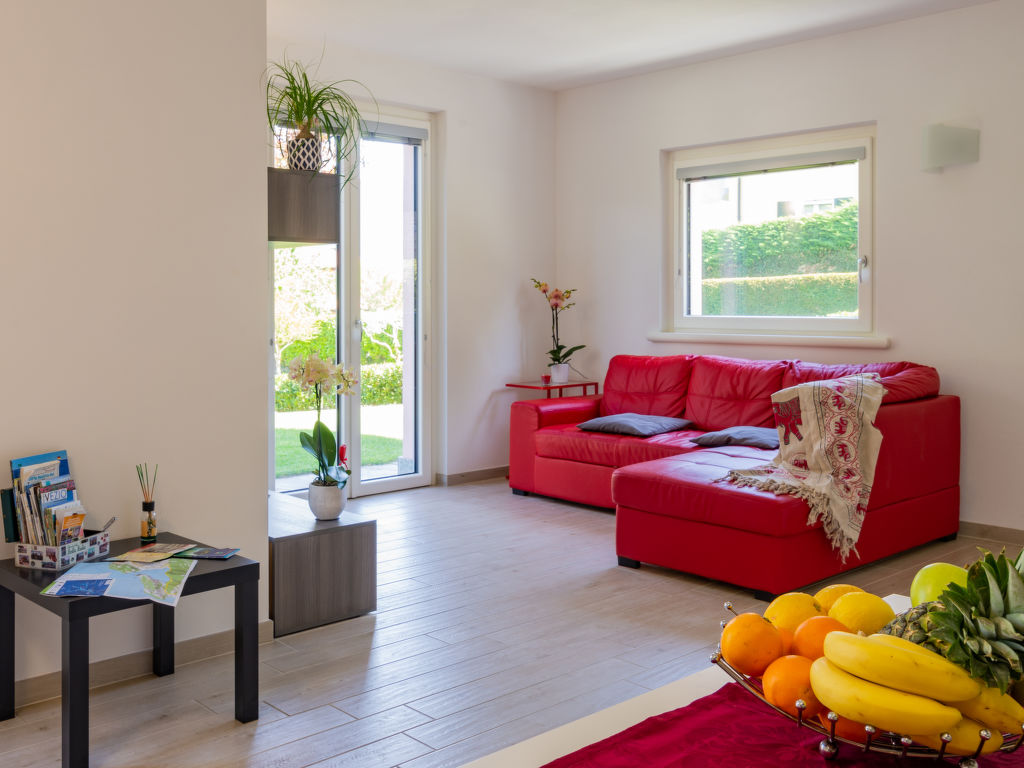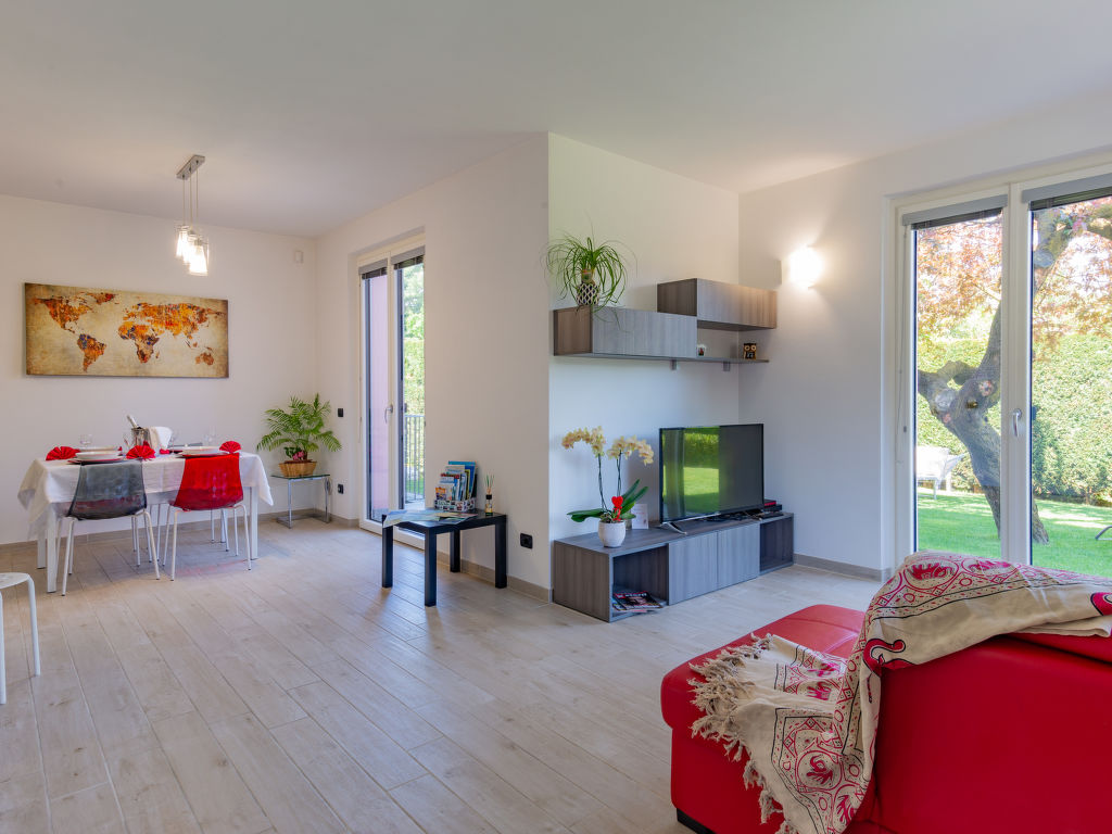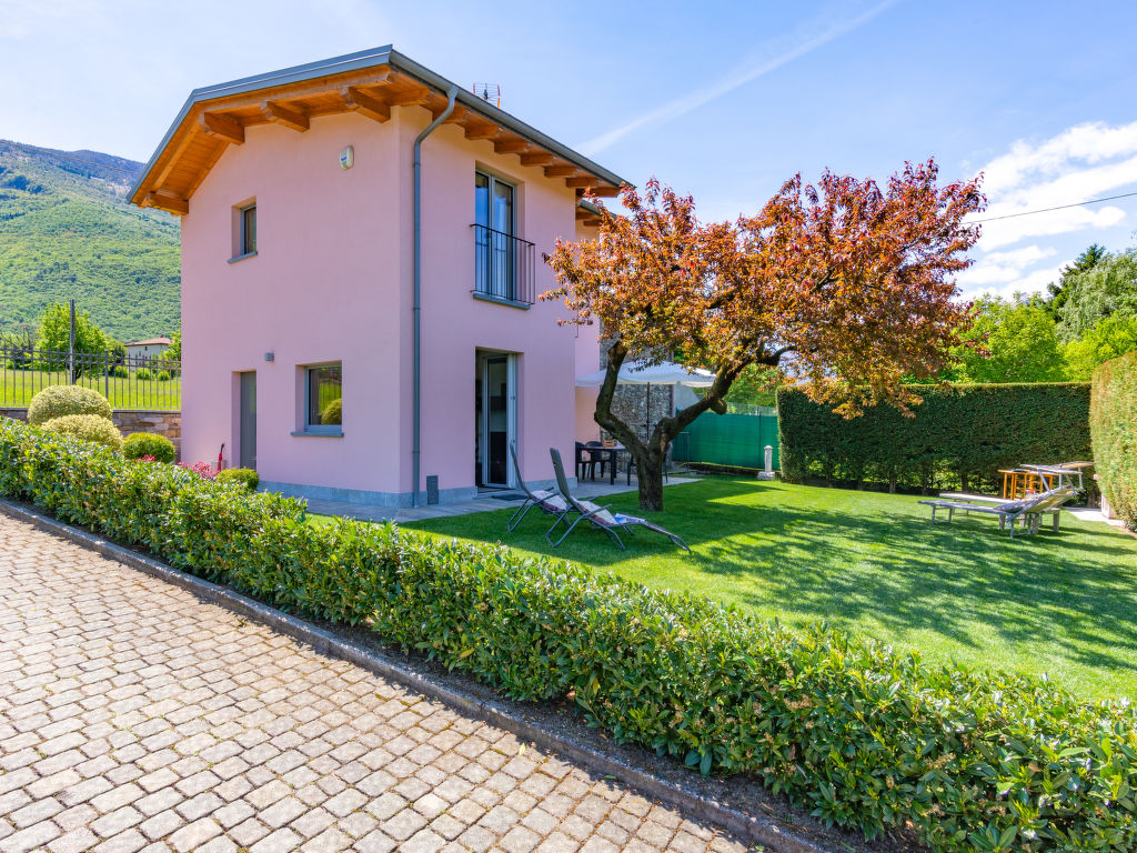Modernes Einfamilienhaus "Orchidea". 1 km vom Zentrum von Colico, 37 km vom Zentrum von Lecco, 67 km vom Zentrum von Como, in einem Wohnquartier, 600 m vom See. Zur Alleinbenutzung: Grundstück 325 m2, gepflegter Garten mit Rasen und Bäumen. Treppenweg (8 Stufen) bis zum Haus. Parkplatz (für 2 Autos) beim Haus. Supermarkt 1 km, Bahnstation "Colico" 1 km, Kieselstrand 600 m, Grasstrand "'L'Ontano'" 1.5 km. Surfschule 2 km.