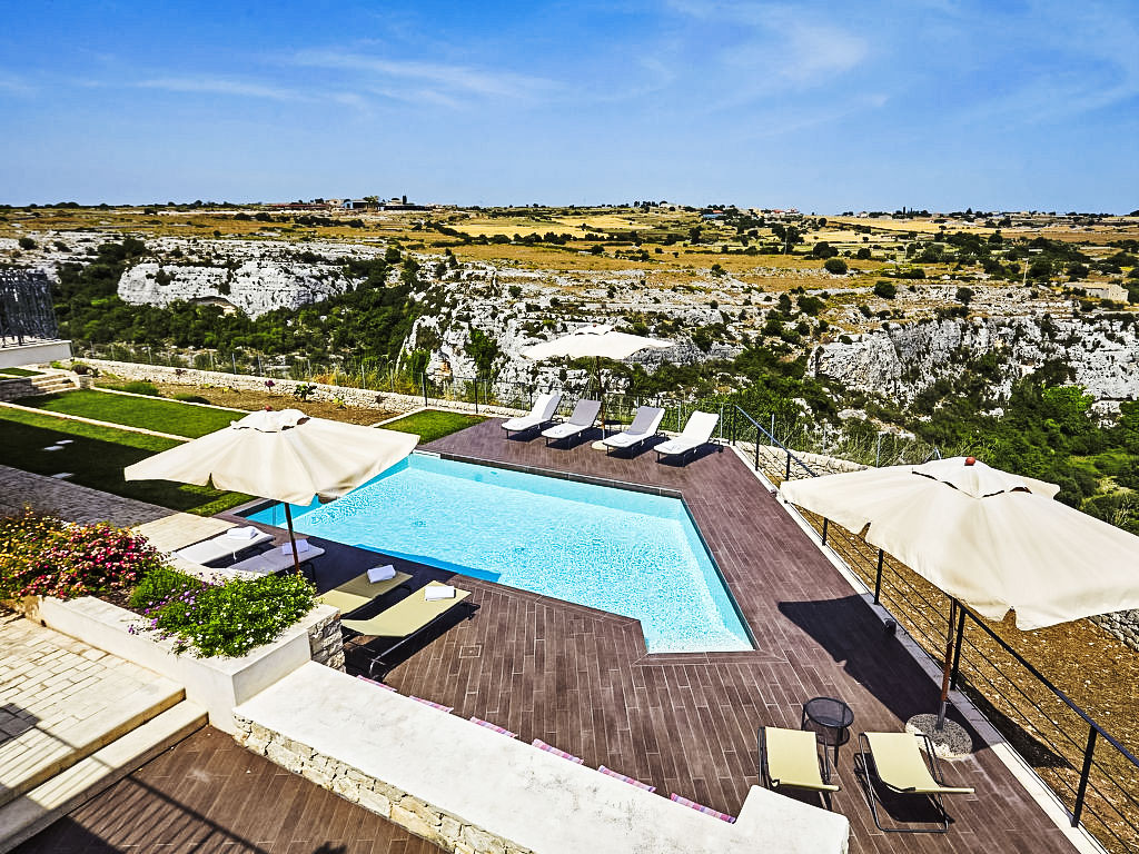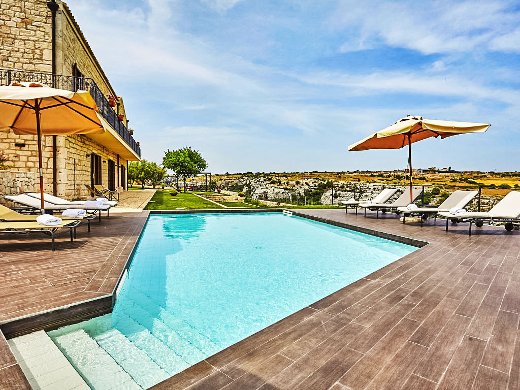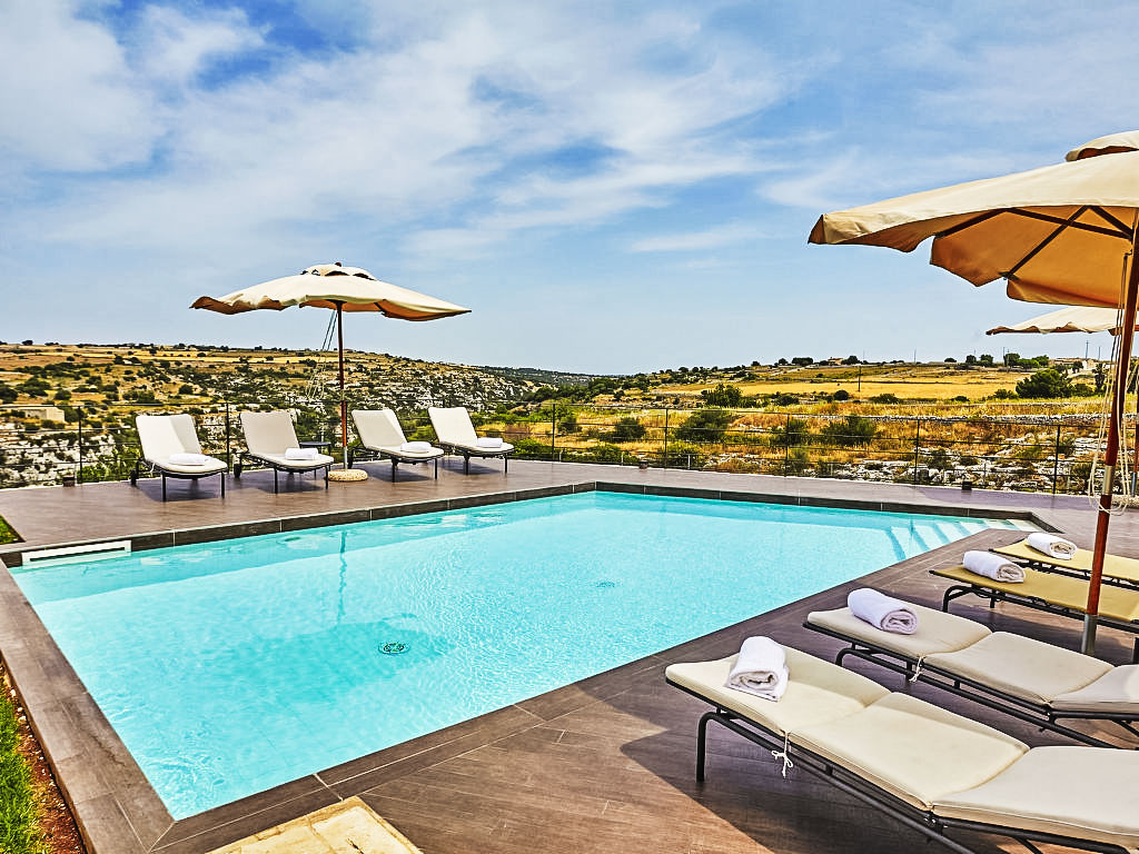 Grosse Villa "al Castello". 10 km vom Zentrum von Modica, ruhige, sonnige, erhöhte Lage, 15 km vom Meer, in einer Sackgasse. Zur Alleinbenutzung: Grundstück 2'300 m2 (eingezäunt), grosser Garten, Schwimmbad (4 x 8 m, 130 cm tief, 01.04.-31.10.). Aussendusche, Sprudelbad, Sitzplatz, Gartenmöbel, Grill. Zur Verfügung: Fahrräder (3). Haushaltshilfe möglich (extra). Öffentliche Parkplätze auf der Strasse. Lebensmittelgeschäft 6 km, Supermarkt 6 km, Restaurant 6 km, Bar 6 km, Sandstrand "Pozzallo" 15 km. Nahe gelegene Sehenswürdigkeiten: Modica 10 km, Pozzallo 16 km, Scicli 19 km, Caltagirone 84 km, Areoporto Catania 118 km, Vulcano Etna 136 km. Bitte beachten: Fahrzeug empfohlen.