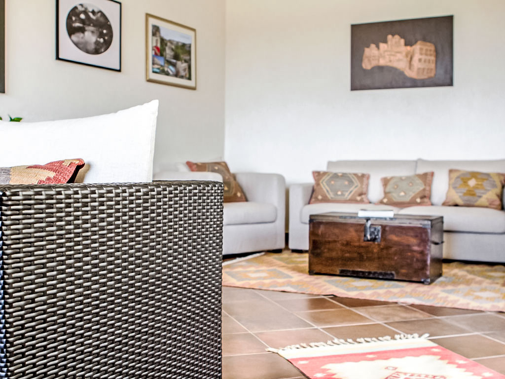 9-Zimmer-Villa 300 m2 auf 2 Stockwerken. Sehr komfortabel eingerichtet: Wohnzimmer mit Sat-TV (Flachbildschirm). Ausgang zum Garten, zur Terrasse. Esszimmer. Ausgang zum Garten. 2 Doppelzimmer, jedes Zimmer mit Dusche/Bidet/WC und Sat-TV (Flachbildschirm), Klimaanlage. Ausgang zum Garten. Kleine Küche (4 Kochplatten, Backofen, Geschirrspüler, Mikrowelle, Tiefkühler, elektrische Kaffeemaschine). Sep. WC. Heizung (extra). Heizung nur verfügbar von 01.12. bis 31.03. Obergeschoss: 2 grosse Doppelzimmer, jedes Zimmer mit Dusche/Bidet/WC und Sat-TV (Flachbildschirm), Klimaanlage. Ausgang zum Balkon, zur Terrasse. 2 grosse Zimmer, jedes Zimmer mit 3 Betten, Dusche/Bidet/WC und Sat-TV (Flachbildschirm). Ausgang zum Balkon. 1 grosses Doppelzimmer mit Dusche/WC und Sat-TV (Flachbildschirm). Ausgang zum Balkon, zur Terrasse. Balkon 25 m2, Terrasse 15 m2, überdacht, Gartensitzplatz 15 m2, überdacht. Terrassenmöbel, Liegestühle. Sicht auf das Tal. Zur Verfügung: Waschmaschine, Babybett bis 2 Jahre, Haartrockner. Internet (Wireless LAN, gratis). Bitte beachten: ein Doppelzimmer liegt außerhalb der Wohnung.