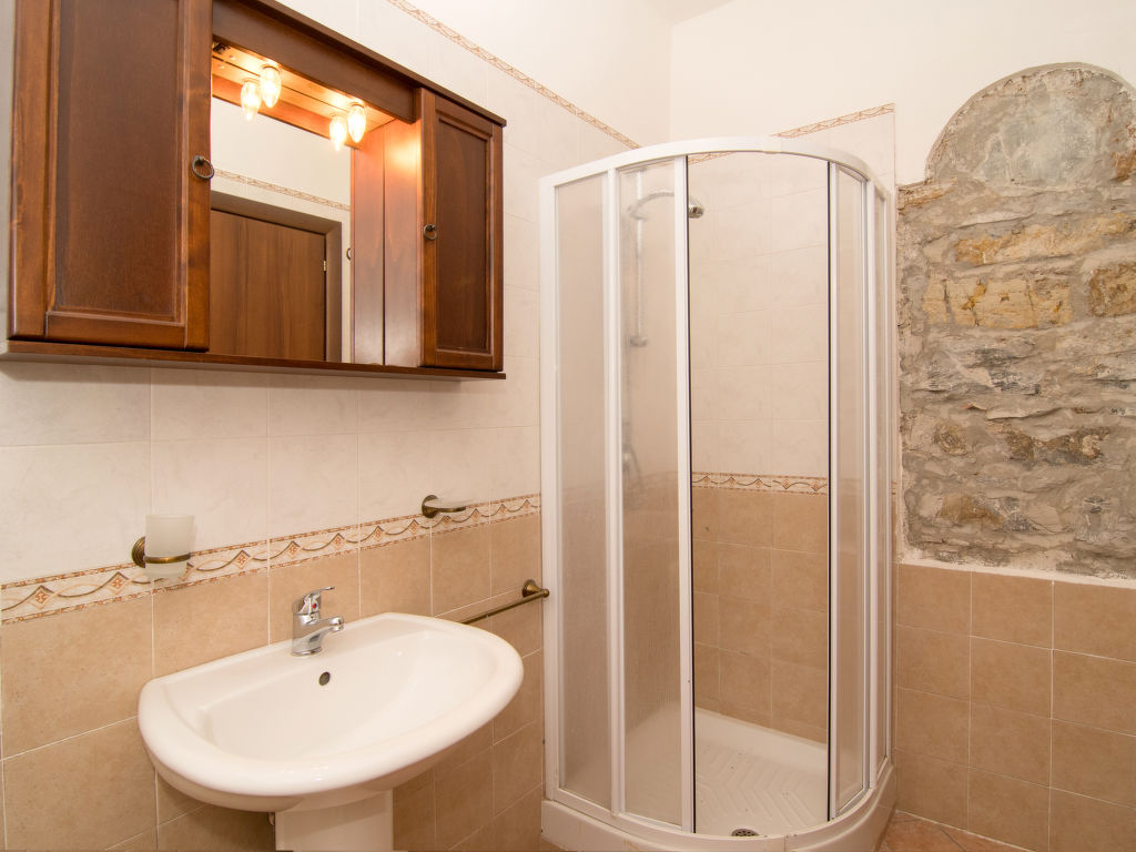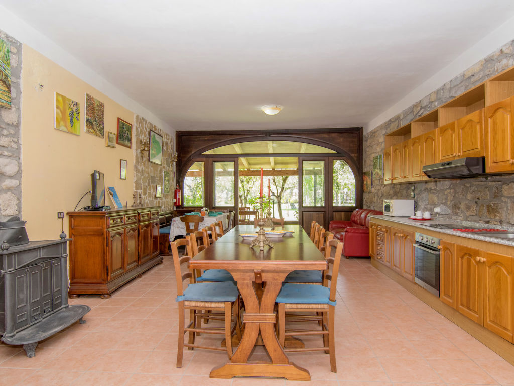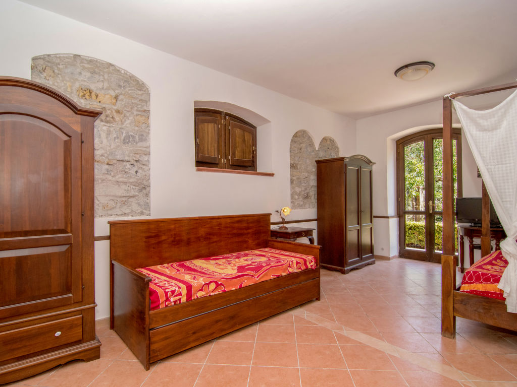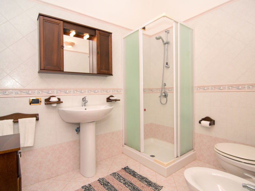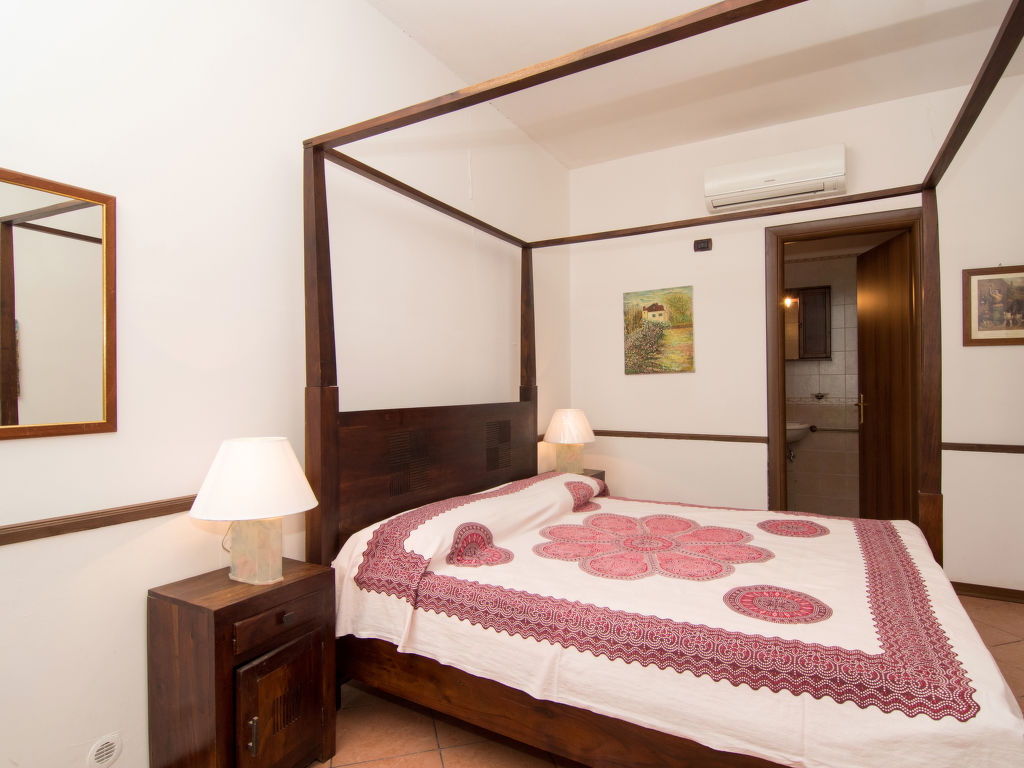 "Tenuta Valente", 5-Zimmer-Villa 200 m2 auf 2 Stockwerken. Geräumig und hell, teilweise renoviert im Jahre 2019, komfortabel und schön eingerichtet: 1 grosses Zimmer mit 4 Betten, Dusche/Bidet/WC, TV, Flachbildschirm, Klimaanlage und Warmluftheizung. Ausgang zum Gartensitzplatz. Grosses Wohn-/Esszimmer mit Esstisch, Küchenblock und TV. Ausgang zum Gartensitzplatz. Kochnische (4 Kochplatten, Backofen, Geschirrspüler, Mikrowelle, Tiefkühler, Grill) mit Esstisch. Obergeschoss: (Aussentreppe) 3 Doppelzimmer, jedes Zimmer mit Dusche/Bidet/WC und TV (Flachbildschirm), Klimaanlage. Ausgang zur Terrasse. Grosse Terrasse 150 m2, Gartensitzplatz, grosser Garten. Terrassenmöbel, Gartengrill, Liegestühle. Schöne Sicht auf den Garten und die Landschaft. Zur Verfügung: Waschmaschine, Bügeleisen, Fliegengitter, Haartrockner. Internet (Wireless LAN, gratis). Parkplatz. Bitte beachten: geeignet für Familien. Feuerlöscher, kein Fahrstuhl.