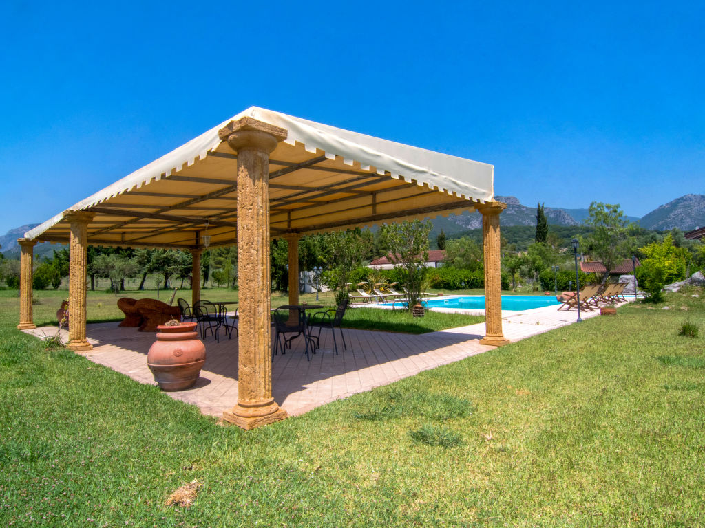 Giungano 2 km von Paestum: Rustikale Villa "Tenuta Valente", umgeben von Bäumen und Feldern. Ruhige, sonnige Lage, 8 km vom Meer, 8 km vom Strand, im Grünen. Zur Alleinbenutzung: Park 1'500 m2 (eingezäunt), Garten (eingezäunt) mit Bäumen, Liegewiese, Schwimmbad (10 x 14 m, 150 - 280 cm tief, 15.05.-15.09. Öffnungszeiten Schwimmbad: 09:00-19:00) mit Innentreppe. Dusche/WC im Poolbereich, Tischtennis, Sitzplatz, Terrasse (150 m2), Gartenmöbel, Grill, Kinderspielplatz, Poolpflege durch den Besitzer/Gärtner. Im Hause: Wireless LAN, Waschmaschine. Wohnungsreinigung möglich (extra). Haushaltshilfe möglich (extra). Koch möglich (extra). Frühstück und Halbpension auf Anfrage (extra). Abholservice vom Flughafen (extra). Parkplatz Nr. 5 beim Haus. Einkaufsgeschäft 1 km, Supermarkt 1 km, Bahnstation "Paestum" 3 km, Sandstrand 3 km, Tauchzentrum 3 km. Nahe gelegene Sehenswürdigkeiten: Paestum Greece Temples 3 km, Amalfi Coast 30 km, Napoli 100 km, Salerno 40 km, Ischia Island, Capri Island. Bitte beachten: Fahrzeug empfohlen. Babyausstattung auf Anfrage (extra), Kinderbetreuung in der Saison (extra). Besitzer wohnt in separatem Hausteil.