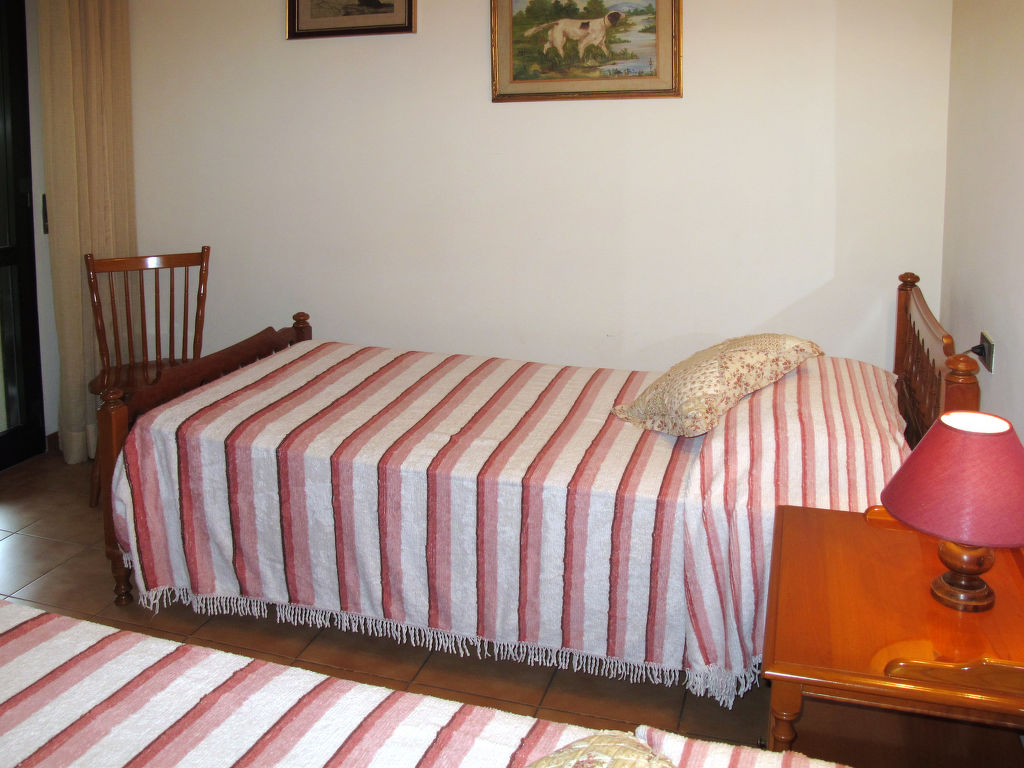 3-Zimmer-Wohnung 50 m2, im erhöhten Erdgeschoss. Einfach und zweckmässig eingerichtet: Wohn-/Esszimmer mit Esstisch und TV. Ausgang zur Terrasse. 1 Zimmer mit 2 Betten (80 cm). 1 Zimmer mit 2 Betten (80 cm). Kleine, offene Küche (Backofen, Gasherd, 4 Flammen, Wasserkocher, Mikrowelle, elektrische Kaffeemaschine). Dusche/WC. Heizung. Terrasse 9 m2, überdacht, Garten 25 m2, Rasen. Terrassenmöbel, Liegestühle (2). Zur Verfügung: Waschmaschine, Bügeleisen, Haartrockner. Internet (Wireless LAN, extra). Bitte beachten: Nichtraucher-Unterkunft.